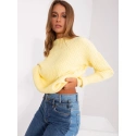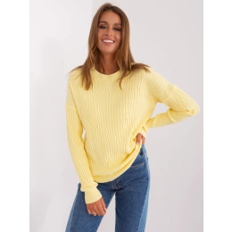 Jasně žlutý dámský svetr s klasickým vzorem .