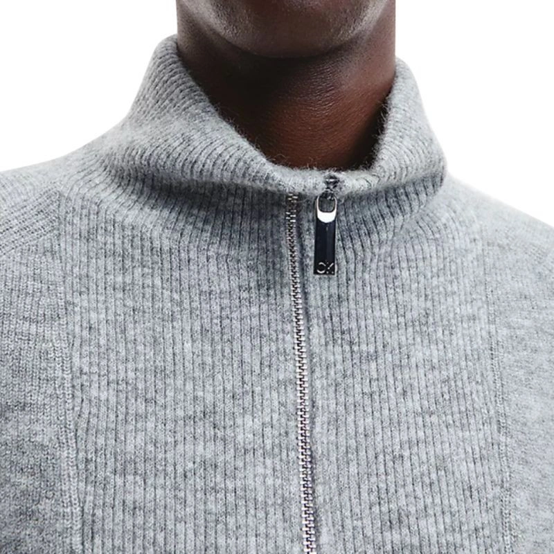 Właściwości: Sweter męski marki Calvin Klein. Model: Half Cardigan Stitch Zip Mock. Zapinany na kr&