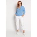 Obszerny kardigan z dekoltem w kształcie serca i dużymi guzikami. Luźny i swobodny, drobny ażurowy haft i wysokiej jakości przędza nadają mu elegancki charakter. Świetnie wygląda z wiosennymi sukienkami i spodniami.