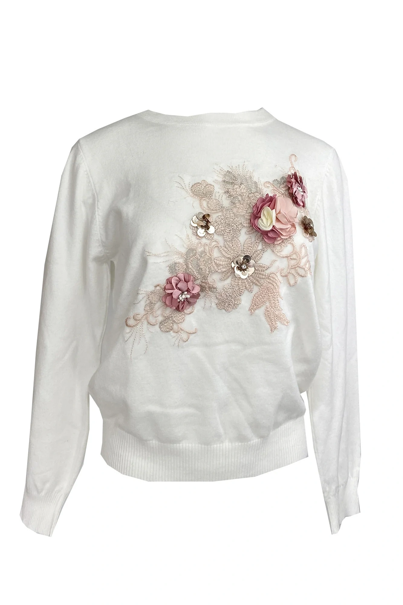 Sweter damski z aplikacją - Gemini ecru L/XL