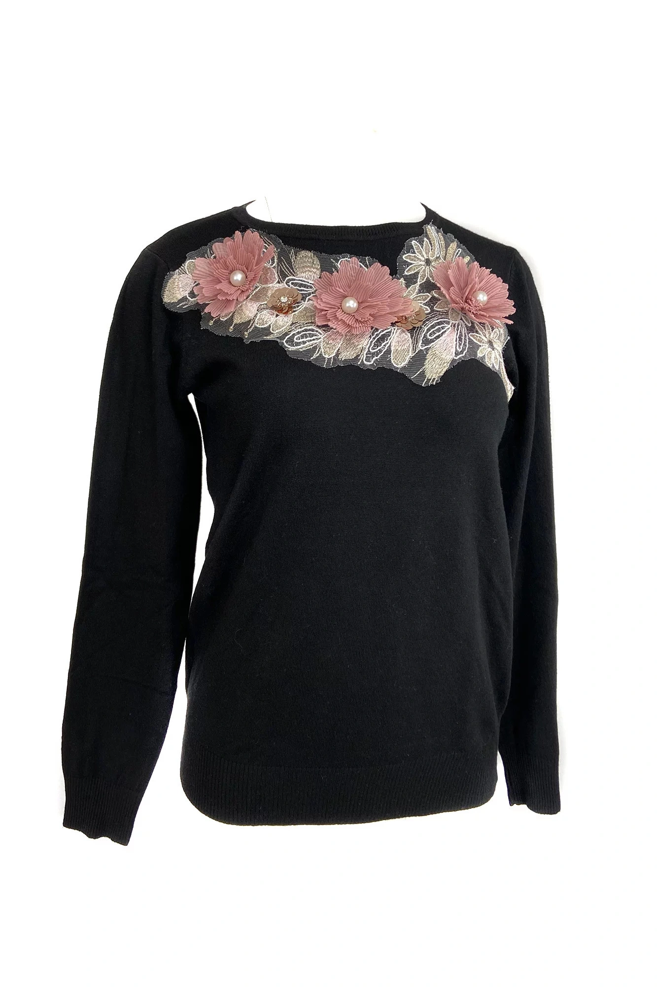Sweter damski z rękawami ozdobionymi koralikami - Gemini