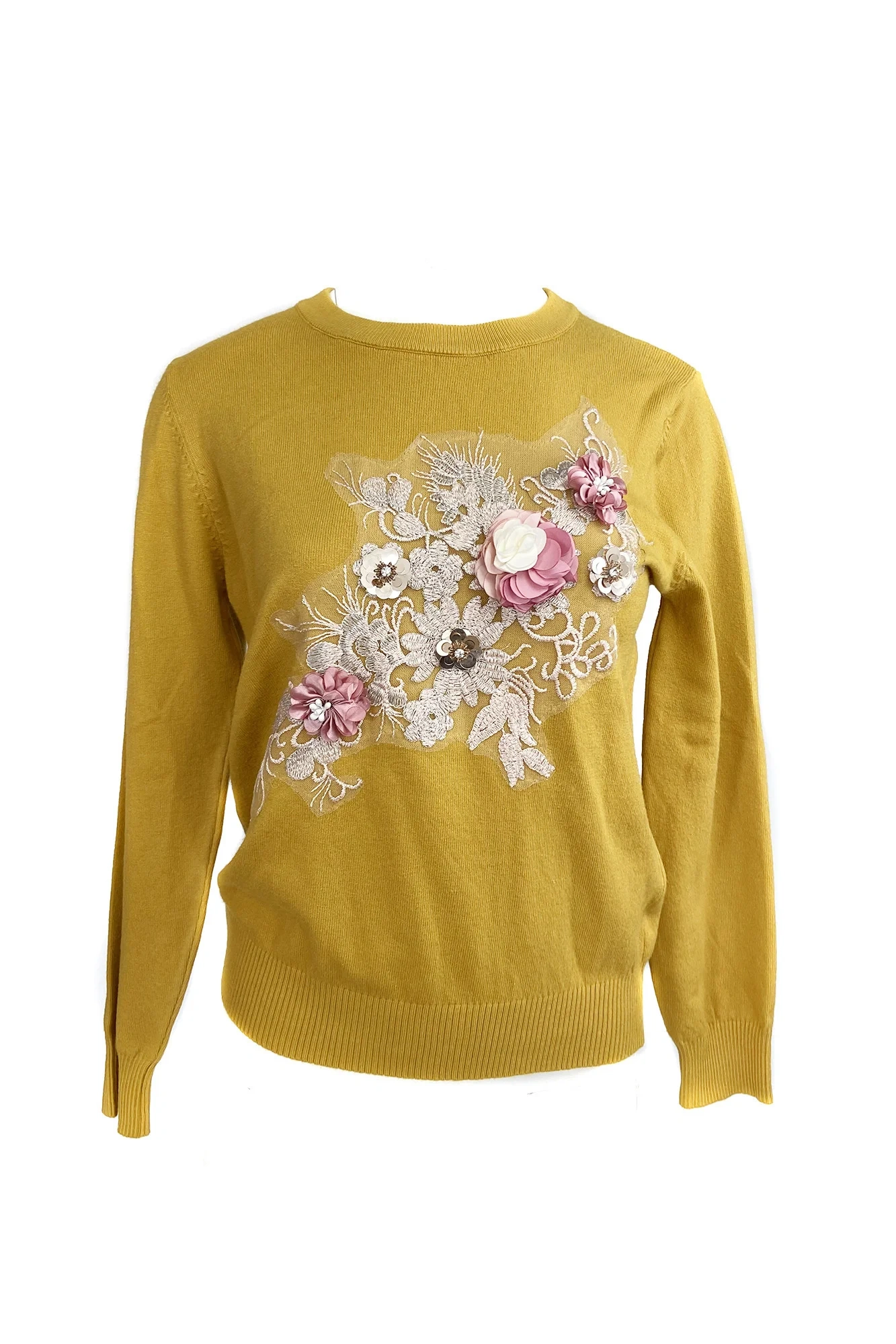 Sweter damski z aplikacją - Gemini musztardowy L/XL