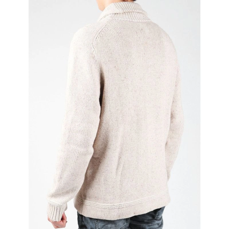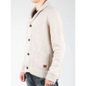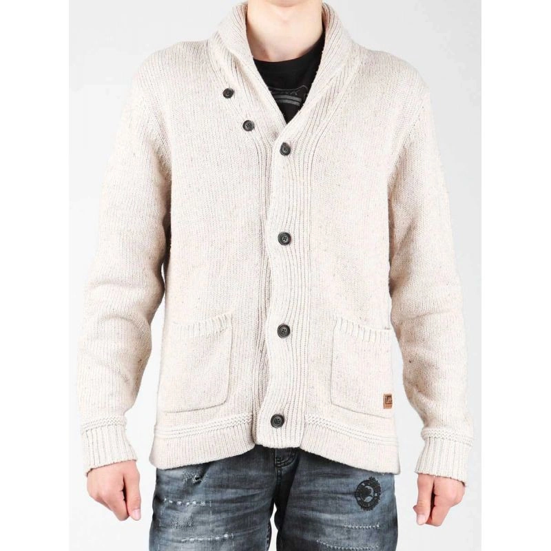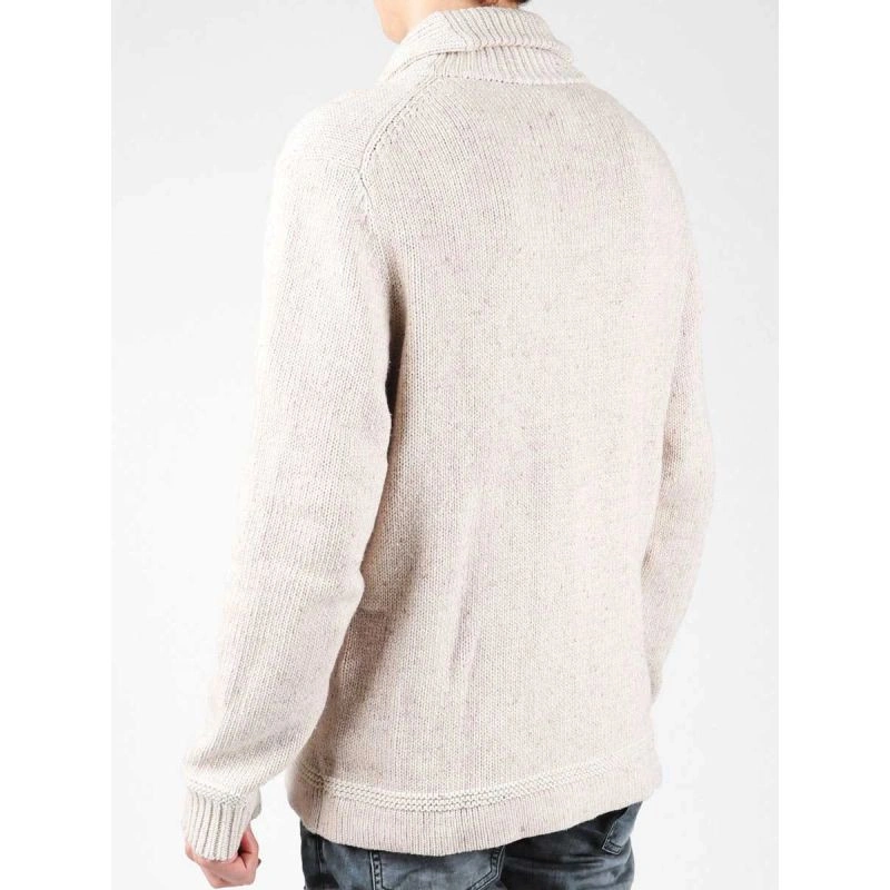 -Sweter dla panów z długim rękawem-Zapięcie na guziki-Wysoki wykładany kołnierz-2 kieszonki-Kolor: white chalk-Materiał: 79% bawełna/ 11% poliester/ 7% akryl/ 3% wełna