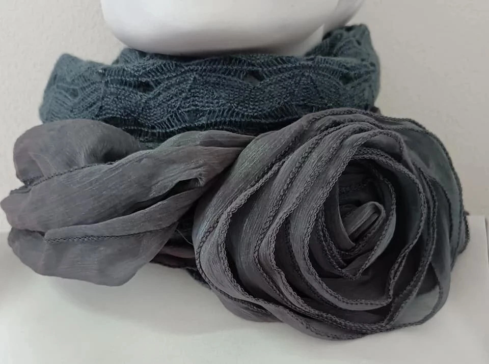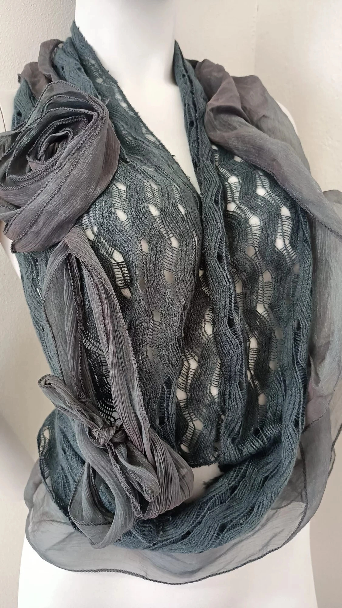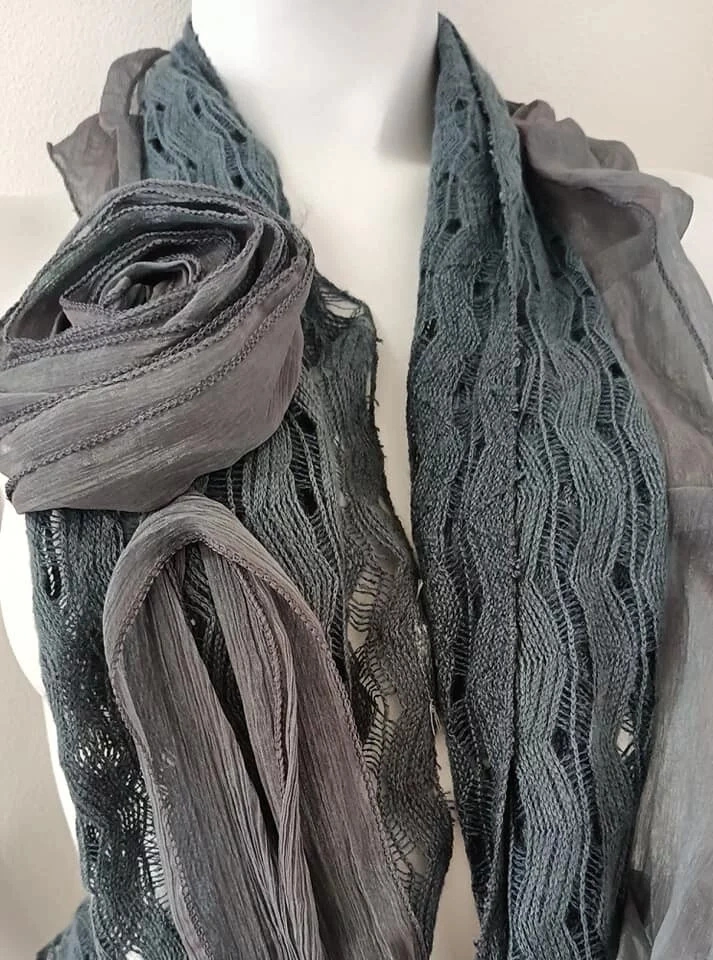 Luksusowy szal damski z kreatywnymi aplikacjami. Skład materiału: 60% wiskoza, 40% lina