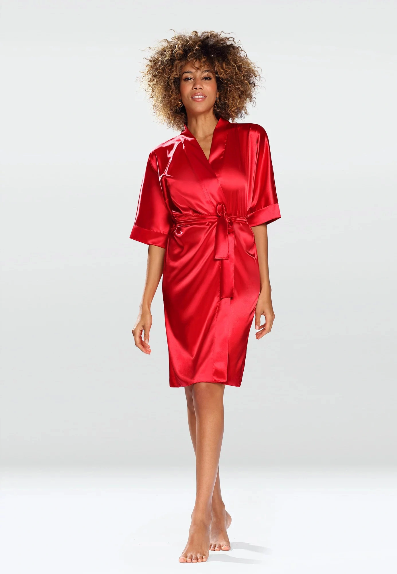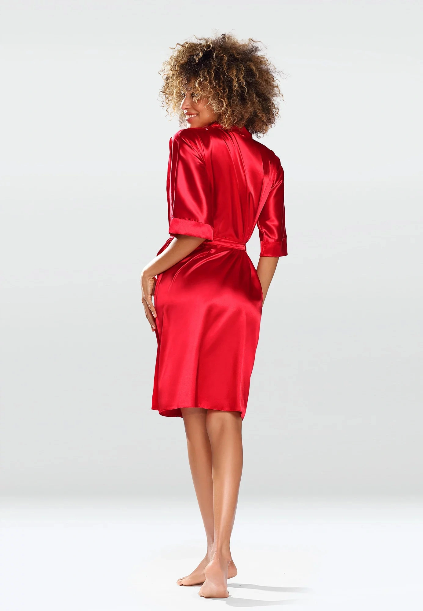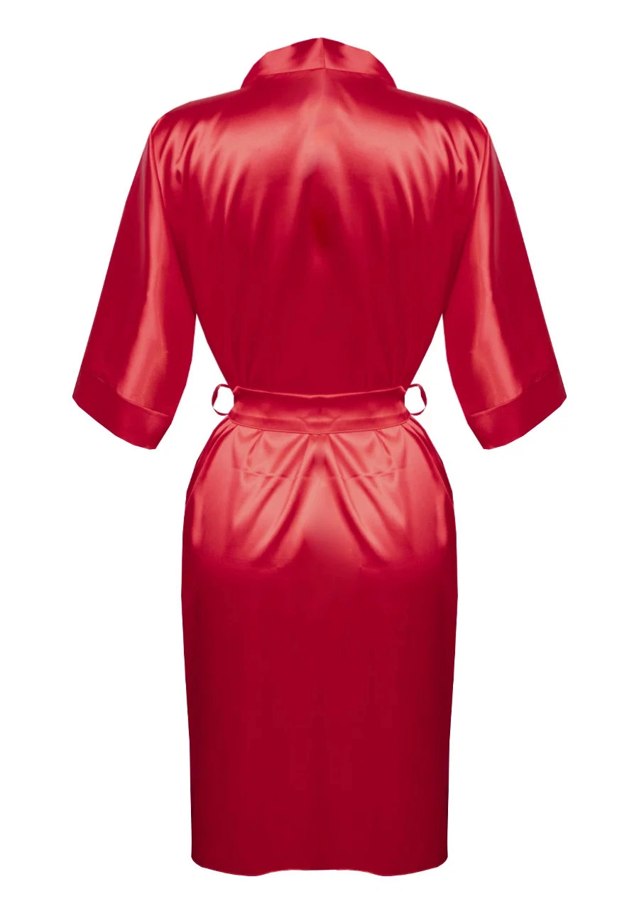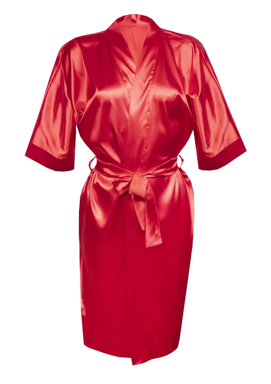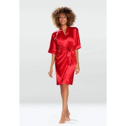 Wygodny damski satynowy szlafrok DKaren 90 o eleganckim kroju.