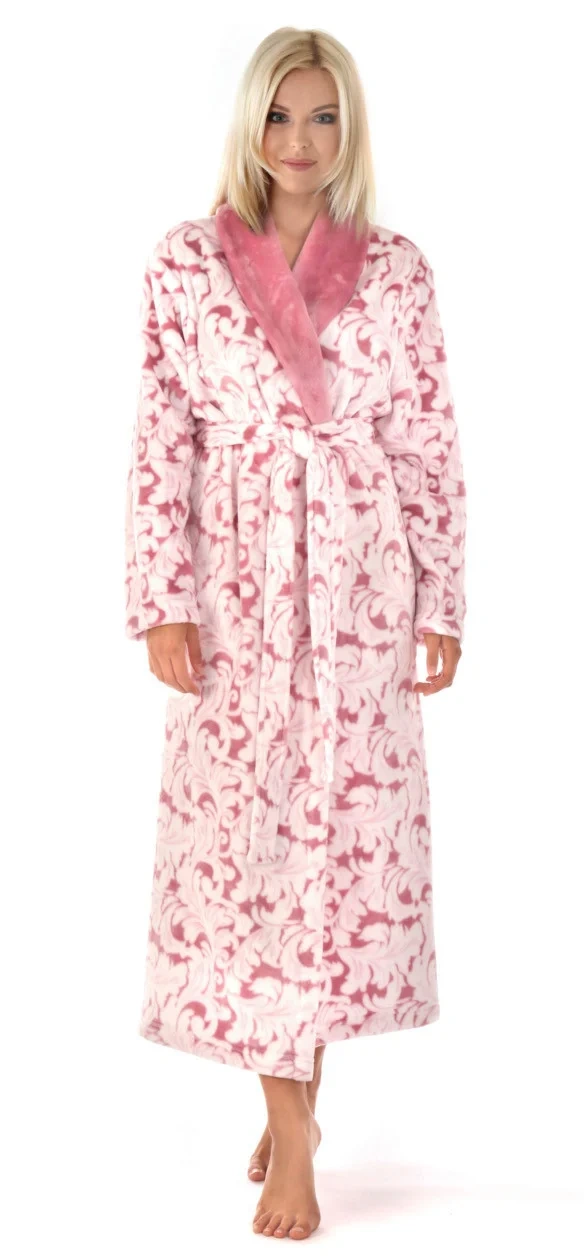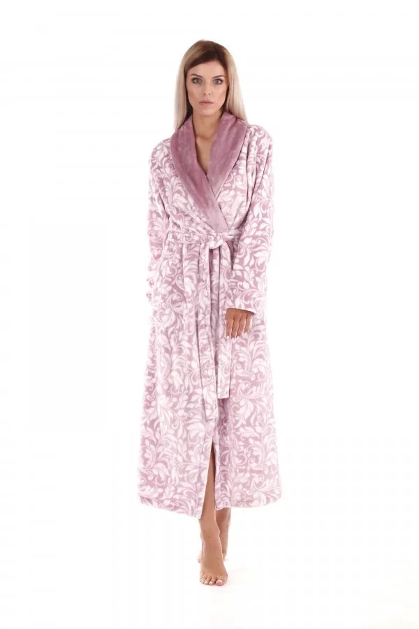 Długi szlafrok damski z szalowym zapięciem. Miękkie i ciepłe.