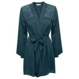 W tym krótkim szlafroku Selmark wykonanym z lekkiego i przyjemnego materiału ozdobionego delikatną koronką poczujesz się komfortowo i elegancko zarazem.