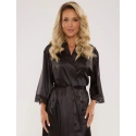 Elegancki, lekki satynowy szlafrok- klasyczny krój- rękawy o długości 7/8 ozdobione koronką- wiązanie w talii- długość do kolan