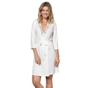 Szlafrok damski z wiskozy z wiązaniem w talii. Krawędzie są ozdobione koronką. Rękawy mają długość 3/4.