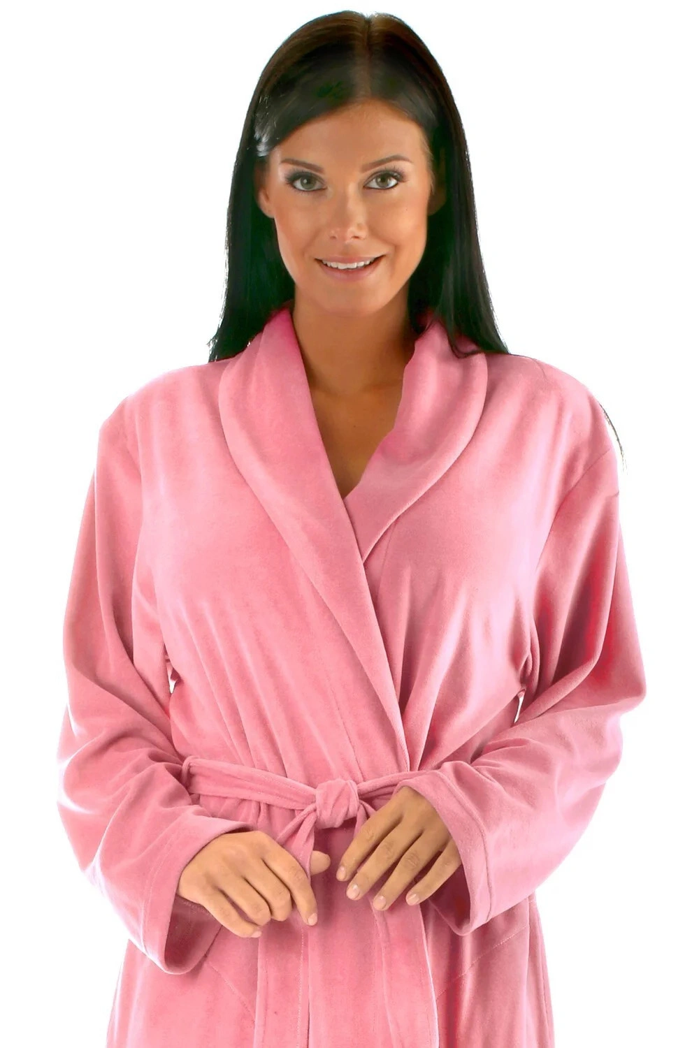 Różowy szlafrok damski z bawełny frotte od Pastunette Deluxe. - szlafrok ma rękawy trzy czwarte - Ki