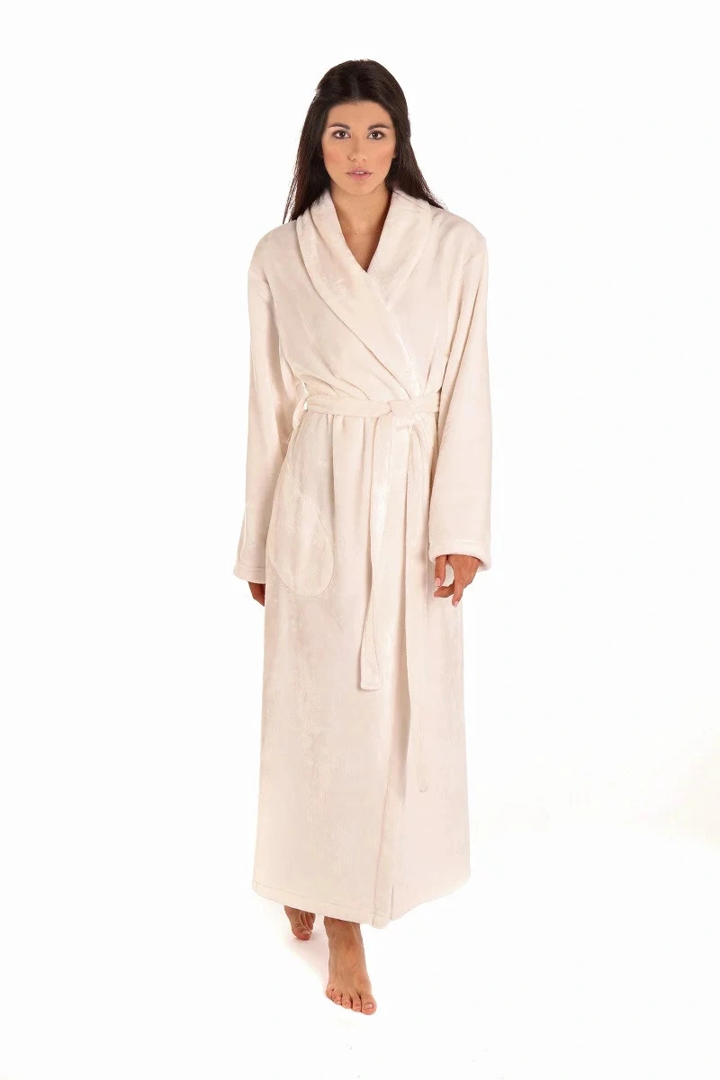 Szlafrok damski od Vestis - kołnierz szalowy - dwie kieszenie - pasek do wiązania - długi 100% polie