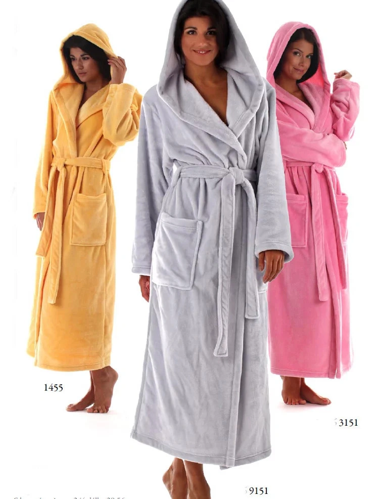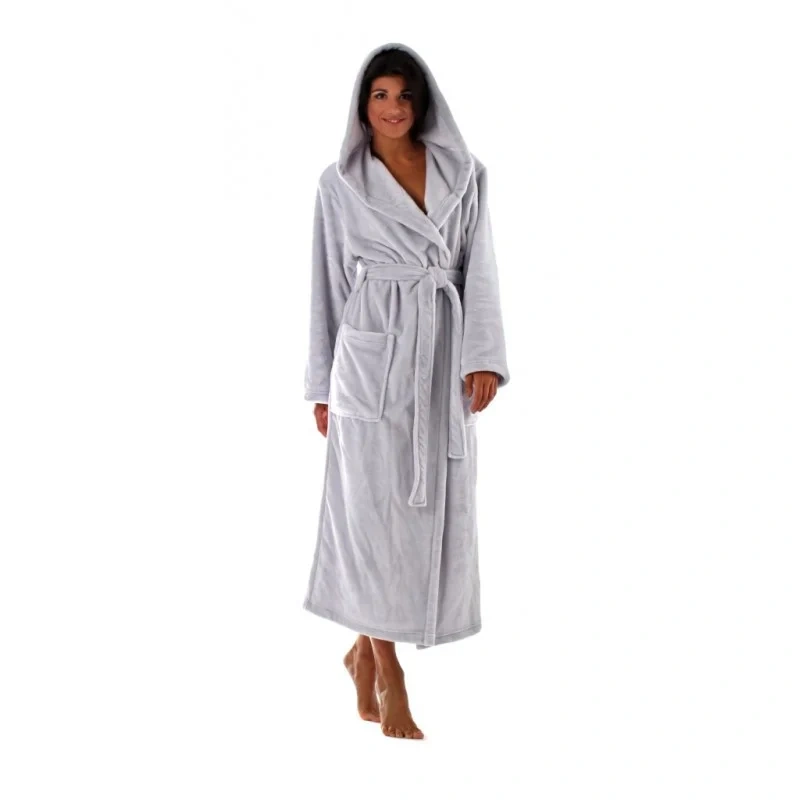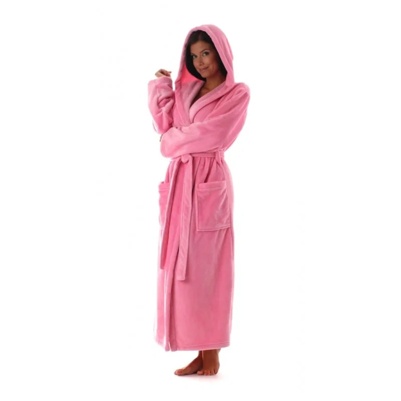 Wysokiej jakości długi, miękki szlafrok damski - wiązanie w talii - kaptur - kieszeń 80% bawełna, 20