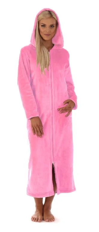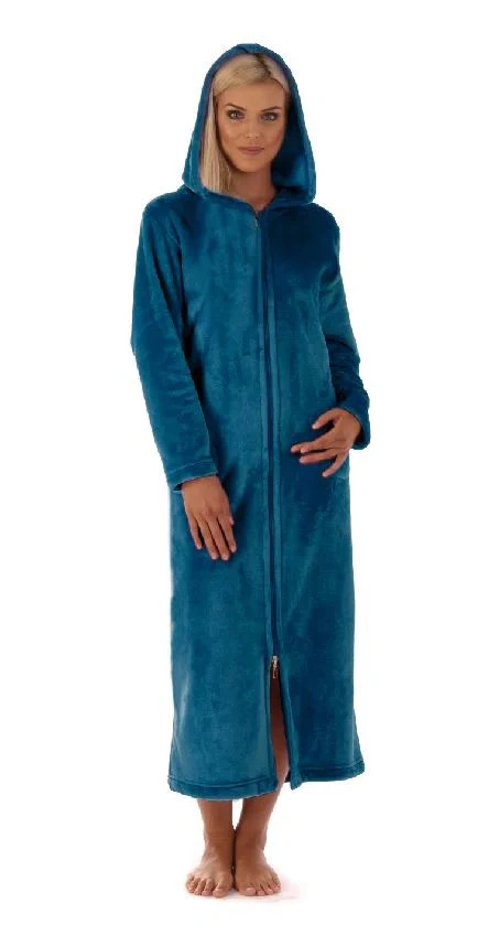 Wysokiej jakości długi, miękki szlafrok damski - wiązanie w talii - kaptur - kieszeń 80% bawełna, 20