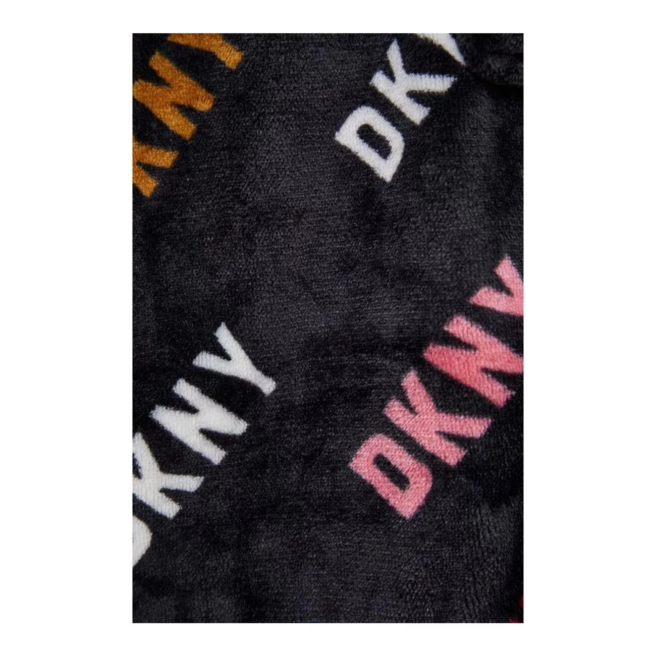 - przytulny krótki szlafrok z szenilu z długimi rękawami i powtarzającym się nadrukiem z logo DKNY