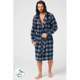 Szlafrok męski MGL 431 B25 to idealne połączenie wygody i domowej elegancji. Wykonany z miękkiej , przyjemnej w dotyku dzianiny w kratę, doskonale przylega do ciała i zapewnia ciepło w chłodniejsze dni. Klasyczny szalowy kołnierz nadaje mu elegancki, ponadczasowy wygląd, a poręczne kieszenie po bokach dodają funkcjonalności. Wiązanie w pasie pozwala na idealne dopasowanie i komfortowe noszenie. To szlafrok, który doskonale sprawdzi się podczas porannej kawy i wieczornego relaksu w domowym zaciszu.
