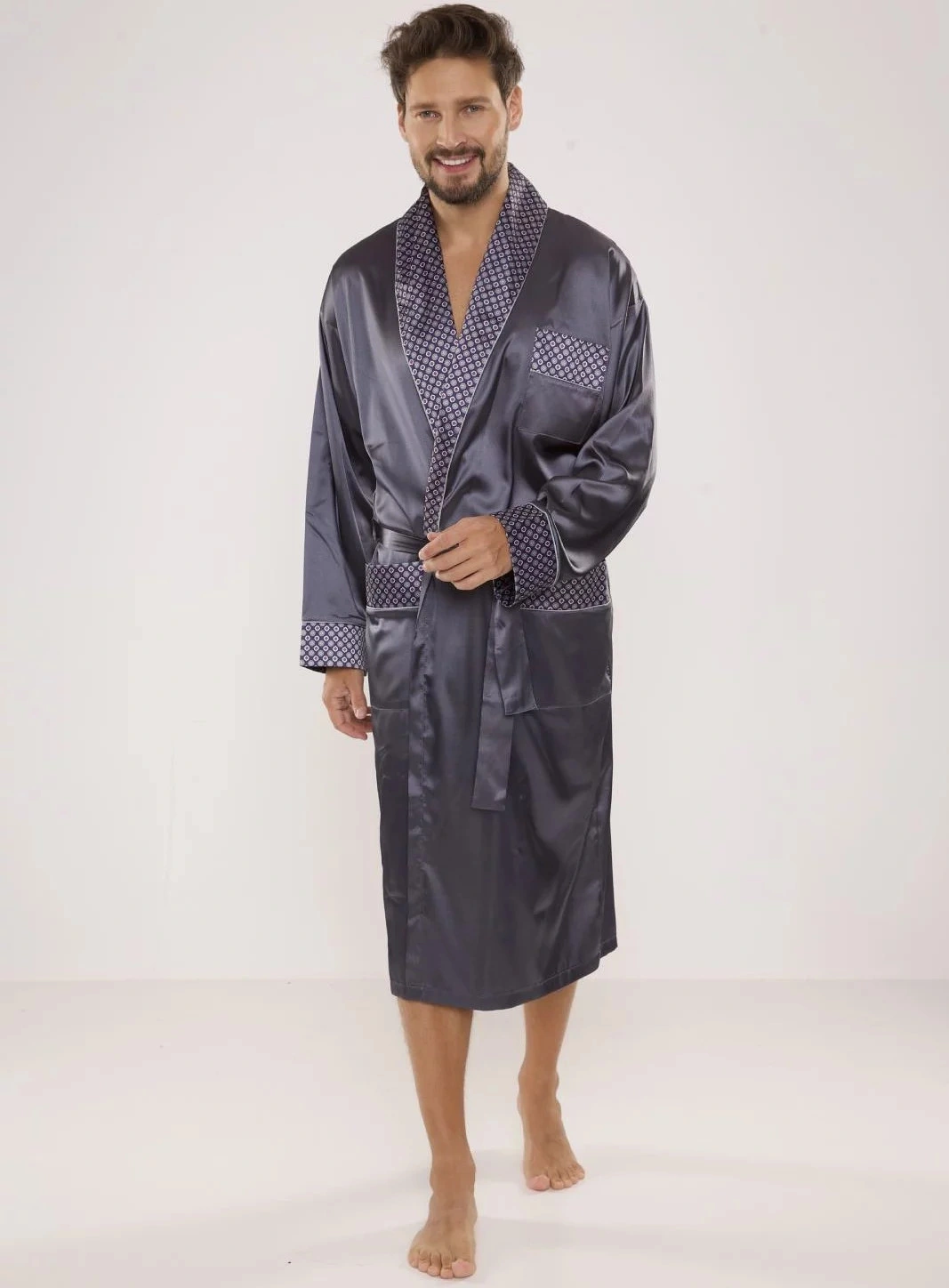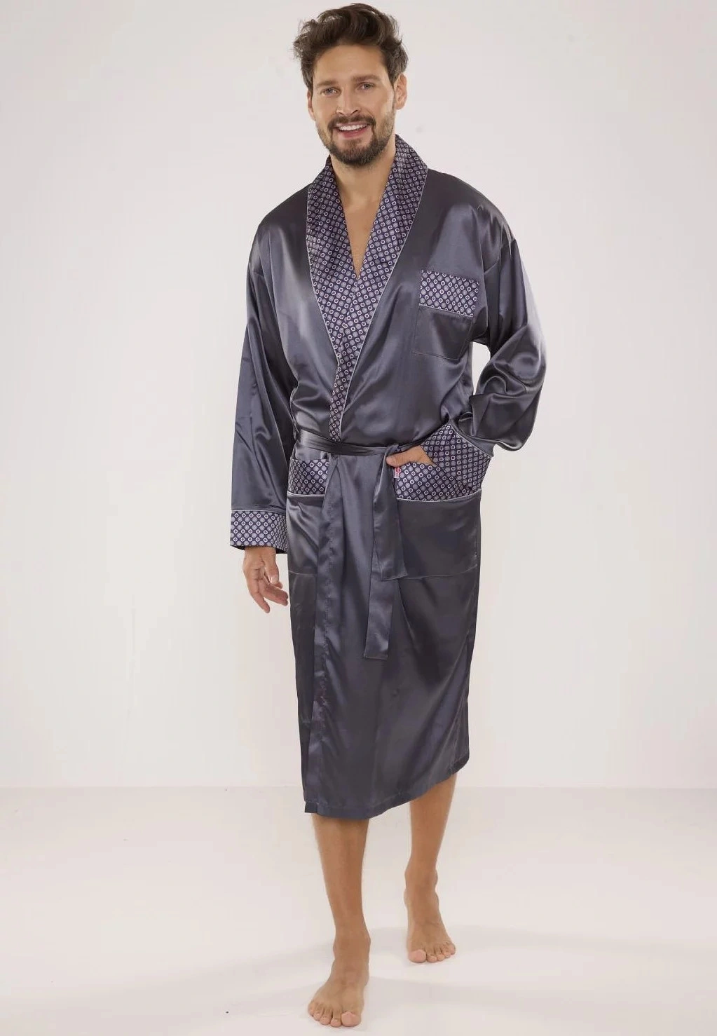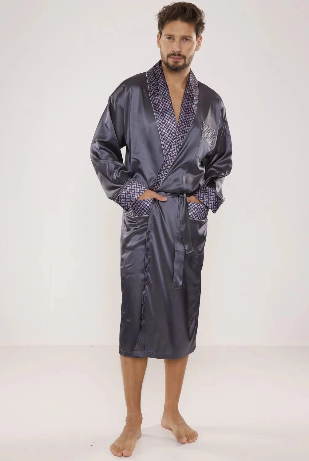 Opis Szlafrok męski Satyna 940 ciemnoszary - De Lafense