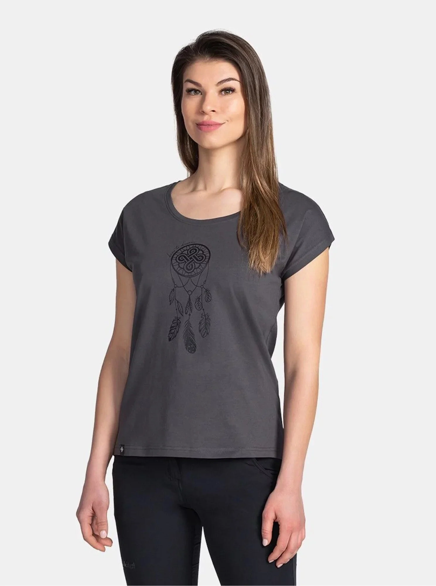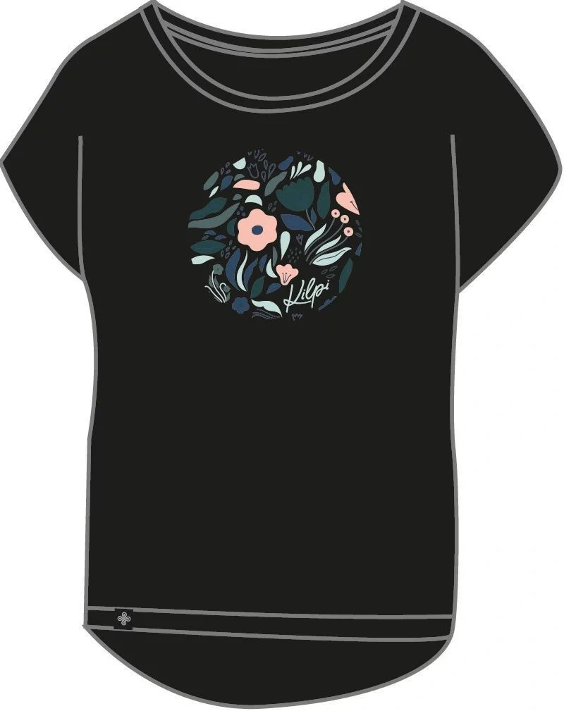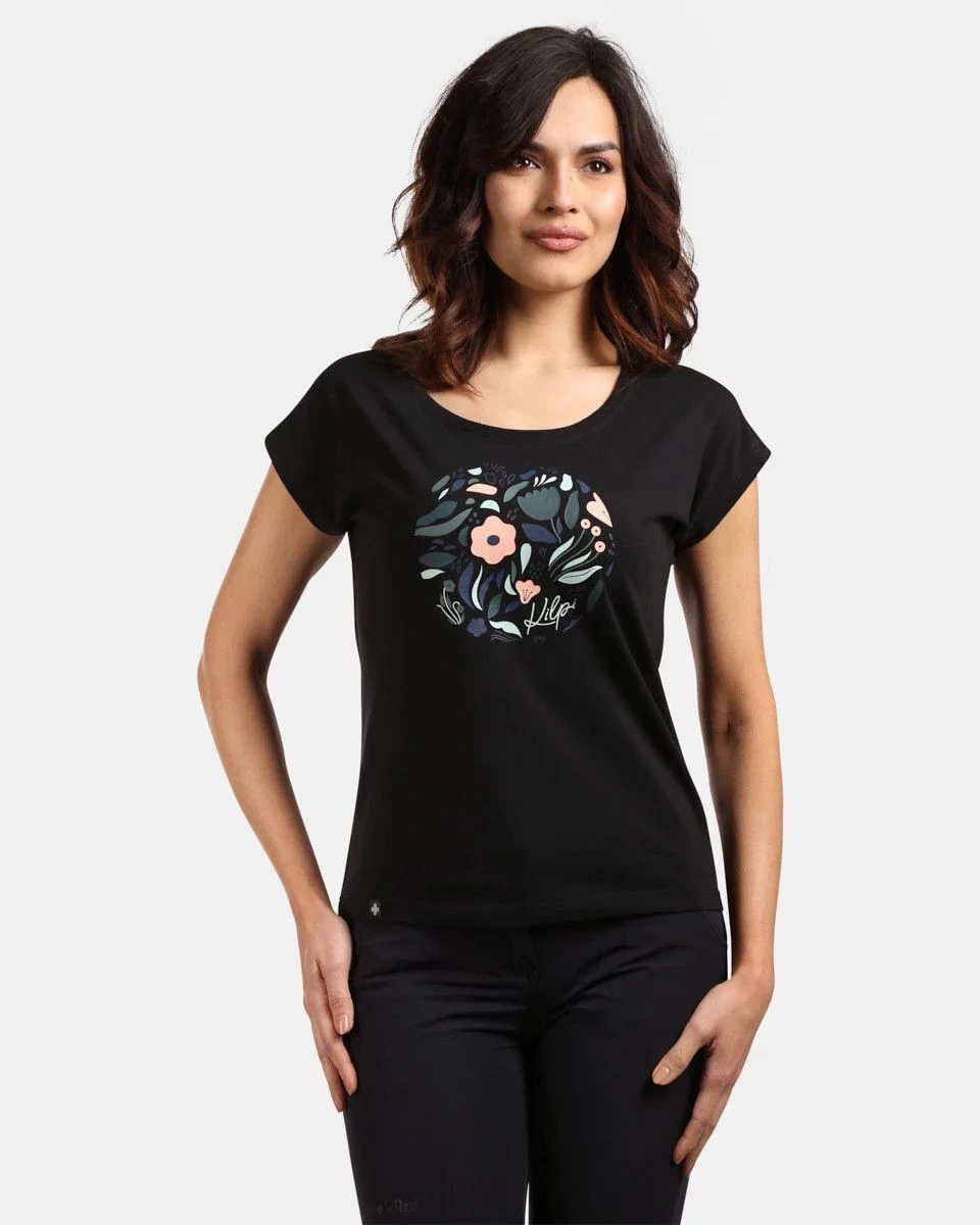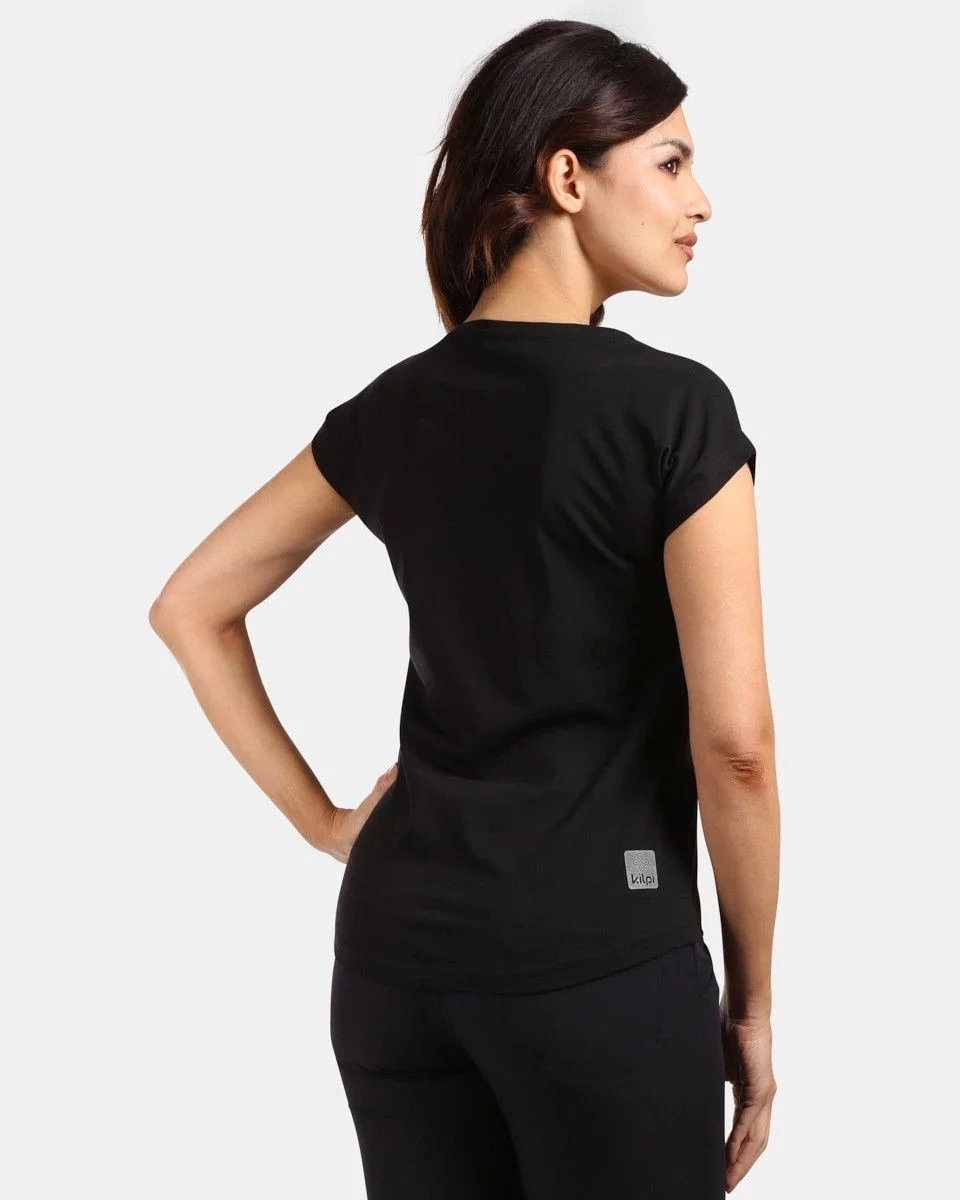 T-shirt damski Kilpi ROANE-W z wygodnej elastycznej dzianiny bawełnianej ma luźny, przewiewny krój z krótkimi rękawami typu batwing i okrągłym dekoltem. Idealny do noszenia na co dzień lub w czasie wolnym, pasuje do każdej sylwetki.