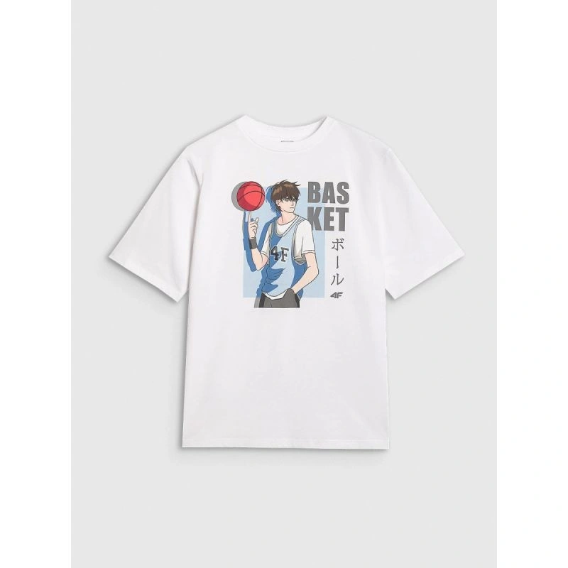 T-shirt oversize z nadrukiem chłopięcy 4F 4FJRAW25TTSHM3062-10S 128