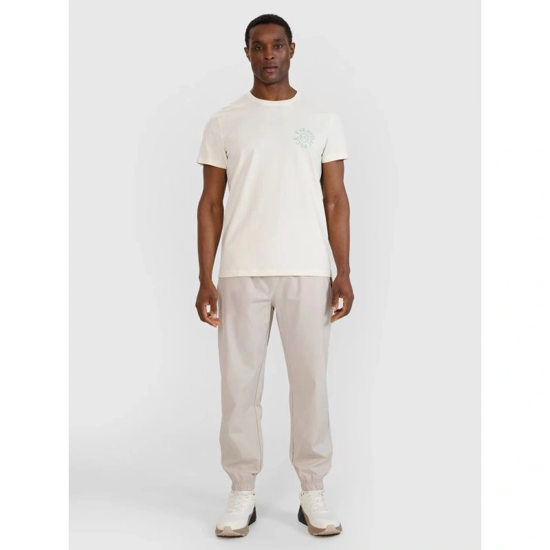 T-shirt męski z krótkim rękawem to uniwersalny element garderoby, który świetnie sprawdzi się zarówno w casualowych, jak i sportowych stylizacjach. Dzięki krojowi regular koszulka wygodnie dopasowuje się do sylwetki, zachowując pełną swobodę ruchów, a standardowa długość do linii bioder sprawia, że prezentuje się schludnie w każdej sytuacji.