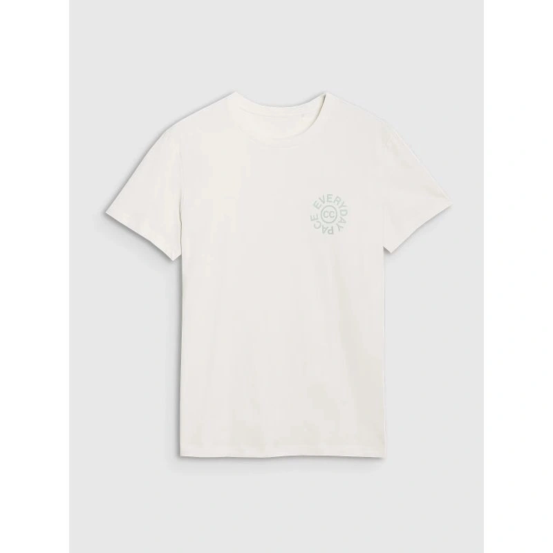 Okrągły dekolt z lekkim ribowaniem dodaje sportowej elegancji, a nadruk z napisem "Everyday Pace" podkreśla codzienny, swobodny charakter koszulki.