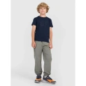 T-shirt 4F chłopięcy został wykonany w 100% z bawełny, dzięki czemu materiał jest miękki, trwały i przyjemny w dotyku. Okrągły dekolt zakończony lekkim ribowaniem oraz obniżone, opadające rękawy dodają swobody i nowoczesnego charakteru. Z przodu znajduje się widoczny nadruk "4F".