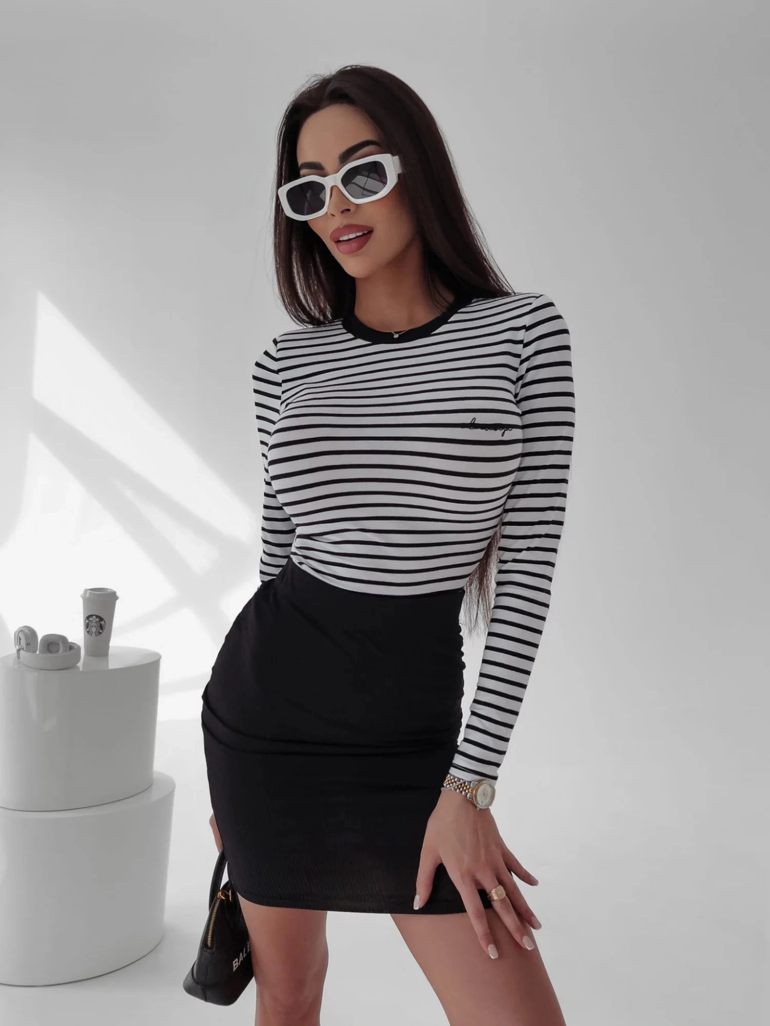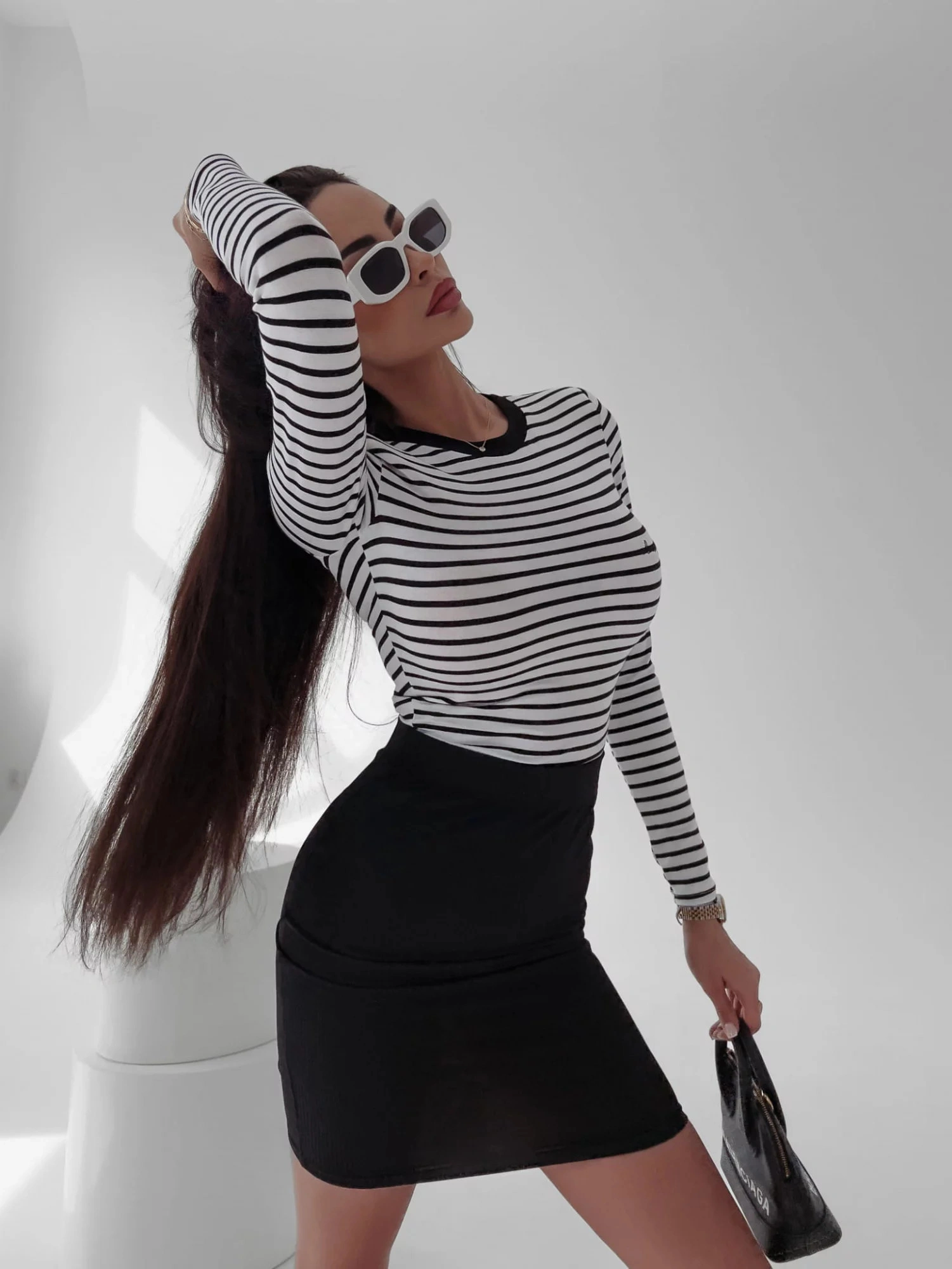 - czarno-biały wzór w paski jest idealny zarówno do eleganckiej ołówkowej spódnicy, jak i sportowych dżinsowych szortów