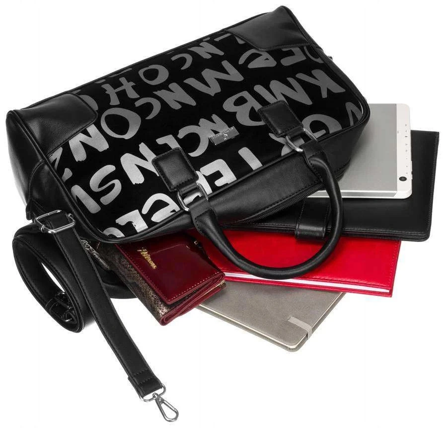 Zorganizuj swoją codzienną pracę dzięki stylowej torebce PETERSON® ze skóry syntetycznej. Pojemna jednokomorowa torba mieści format A4, posiada 2 kieszenie i jest wyposażona w zamek błyskawiczny. Ułatwia transport dokumentów - wyściełany środek, długi regulowany pasek i dwa uchwyty. Wyrafinowane wykończenie i srebrne okucia gwarantują prestiżowe wrażenia. Torba waży zaledwie 800 g. Pracuj i baw się z torbą PETERSON®!