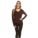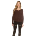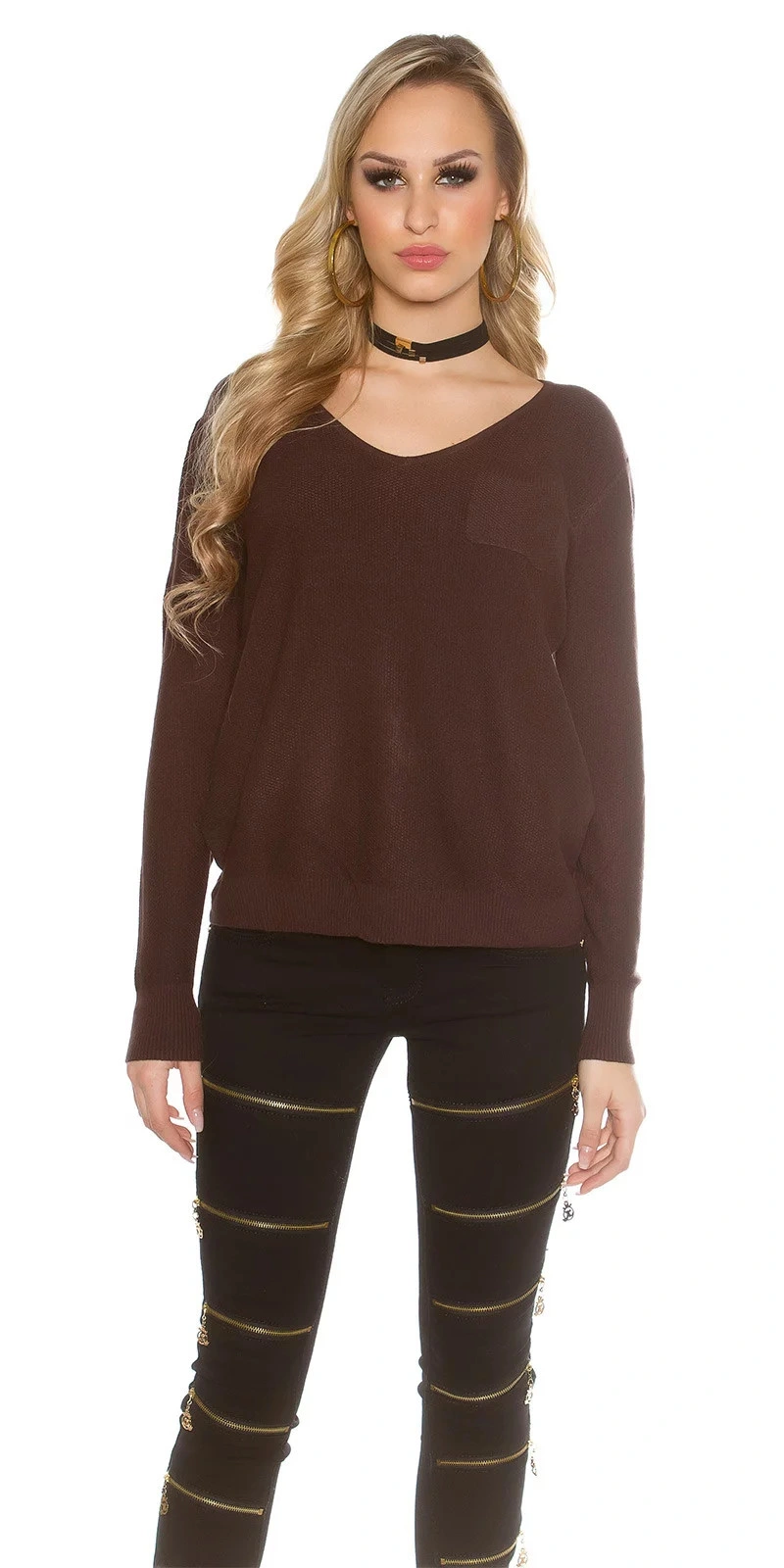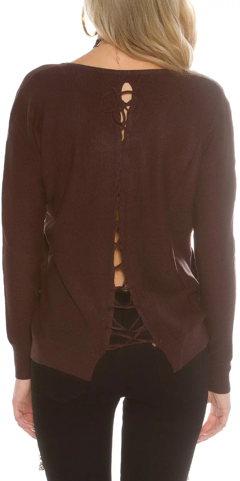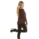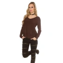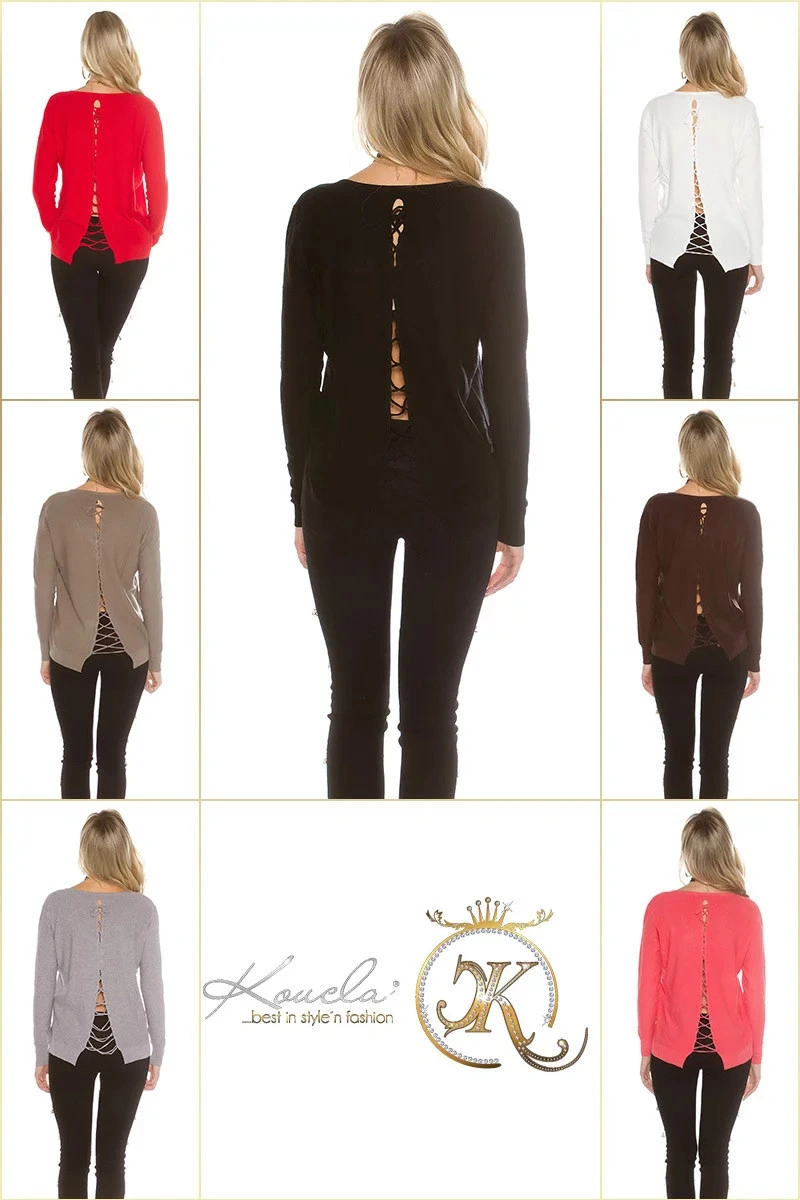 Seksowny sweter damski z okrągłym dekoltem, długimi rękawami i ściągaczem z tyłu.