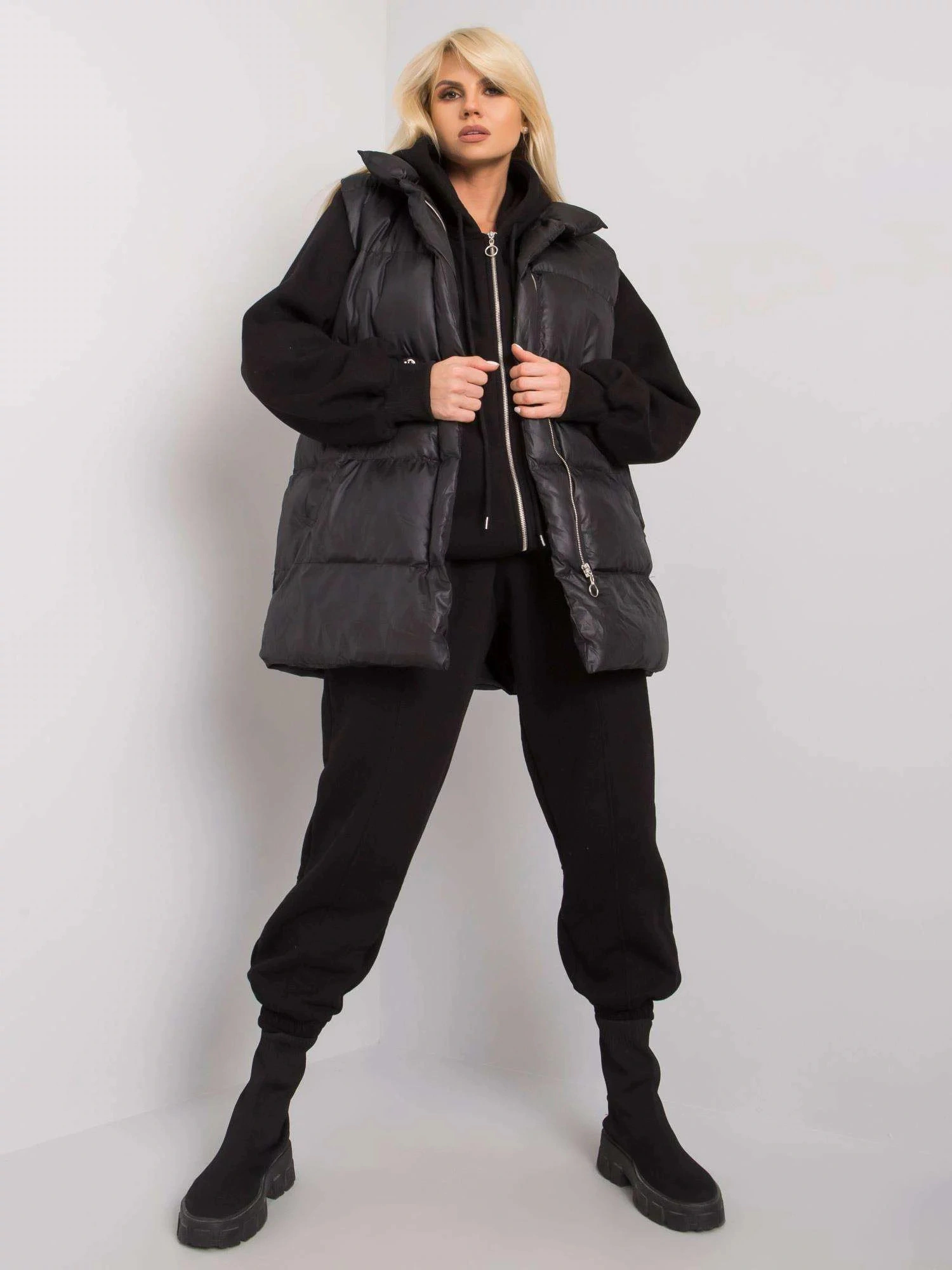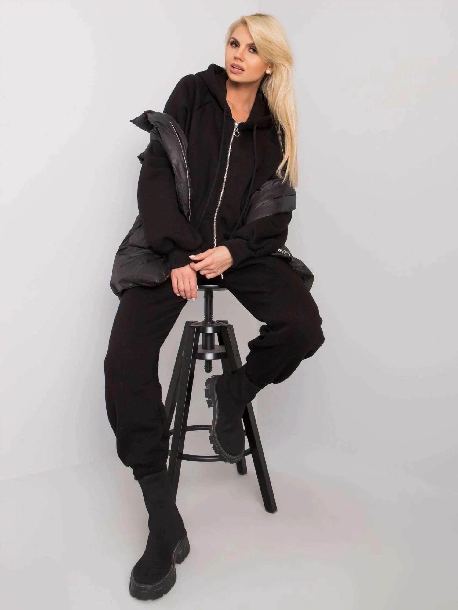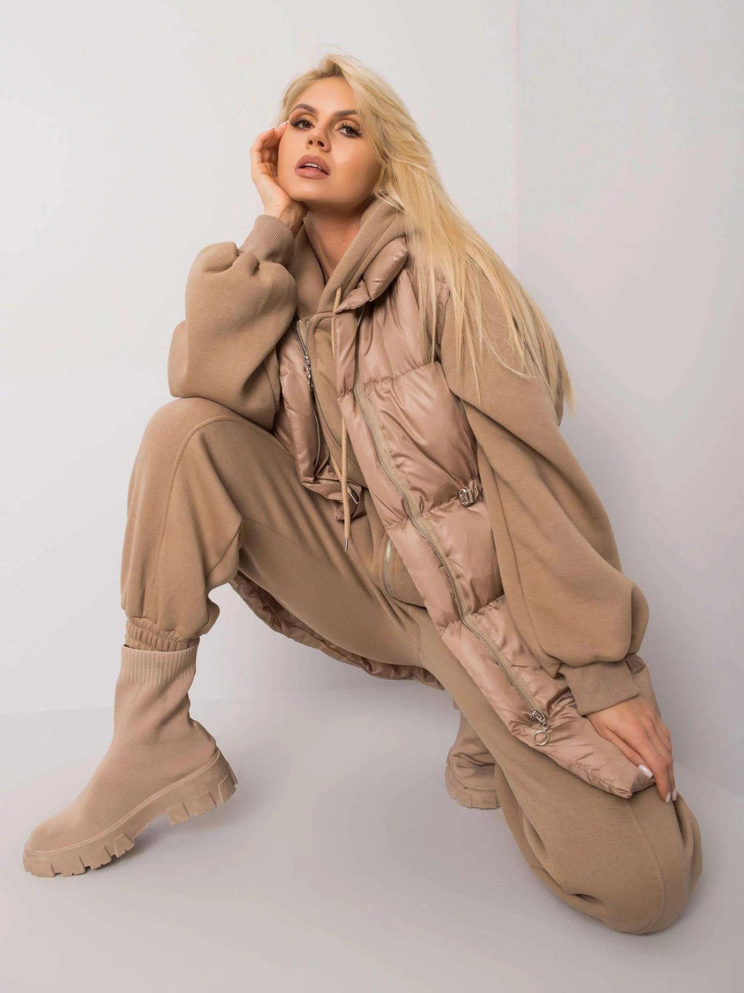 Zestaw zawiera: bluzę z kapturem, spodnie dresowe, kamizelkę puchową.