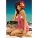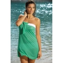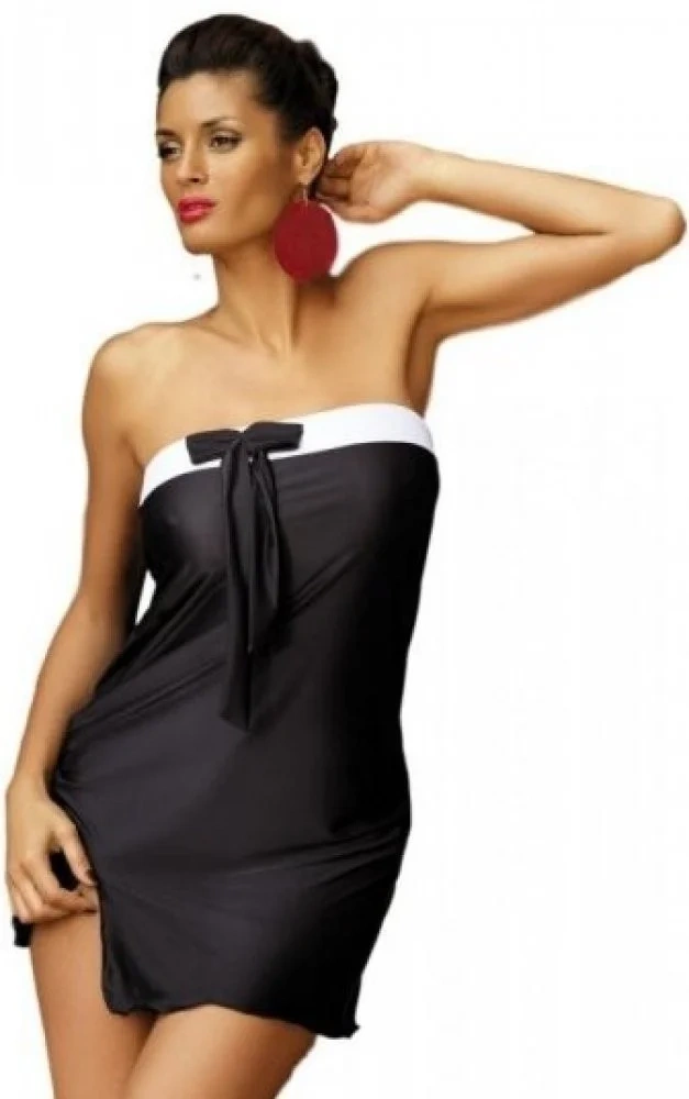 Seksowna tunika plażowa, która z łatwością zastąpi pareo. Jeśli nie lubisz ważyć pareo i poświęcać czasu na jego zakładanie, nie wahaj się. Mia to lekka, lekko prześwitująca tunika. Nie ma pasków. Dobrze się trzyma dzięki elastycznemu materiałowi na górnym brzegu. Pozwoli to ładnie wyeksponować piersi. Materiał jest miękki i przyjemny w dotyku. Dół jest ozdobiony małą falbanką i niewielkim rozcięciem na udzie. Tunika jest krótka, odpowiednia dla każdej kobiety. Dzięki luźnemu krojowi maskuje niedoskonałości i daje poczucie maksymalnego komfortu. Mia ma różne kolory, które z pewnością można dopasować do stroju kąpielowego. Białe obszycie jest zawsze ozdobione kokardą w kolorze tuniki.