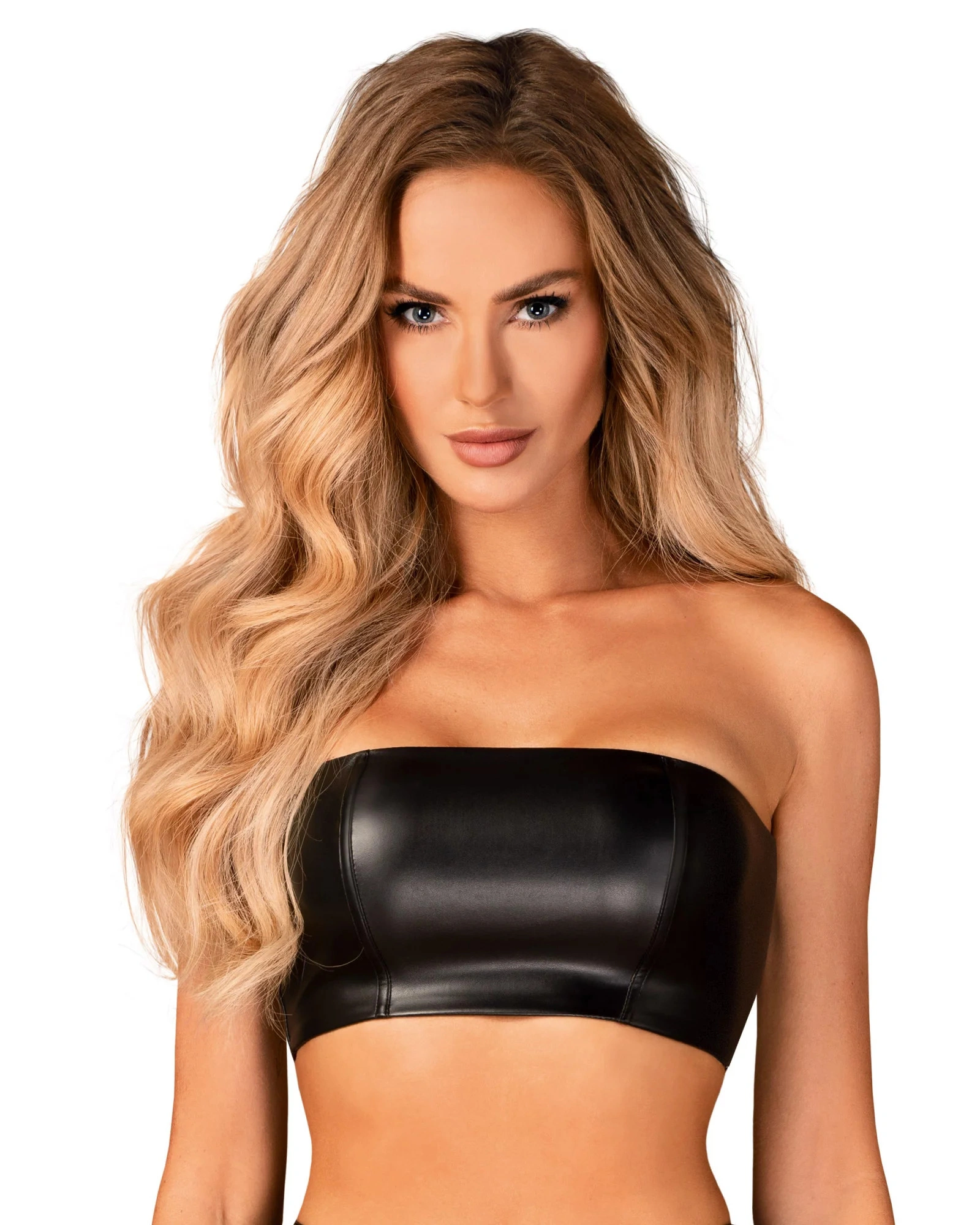 Wyjątkowy top Hermeza to nowoczesny i bardzo kobiecy wybór, który pięknie podkreśla biust. Krój bandeau i uwodzicielski materiał "wet look" tworzą super seksowne i uwodzicielskie połączenie! Jeśli lubisz nietypowe wymiary i nie są ci obce eksperymenty w sypialni, to ten specjalny top jest dla ciebie!