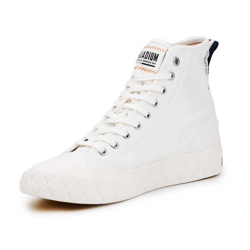 - logo Palladium z boku, z tyłu podeszwy i na języku