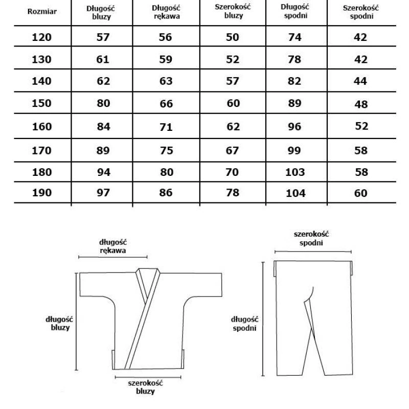 Właściwości: Klasyczne kimono do judo dla osób początkujących o gramaturze 550 g/m2 w kolorz