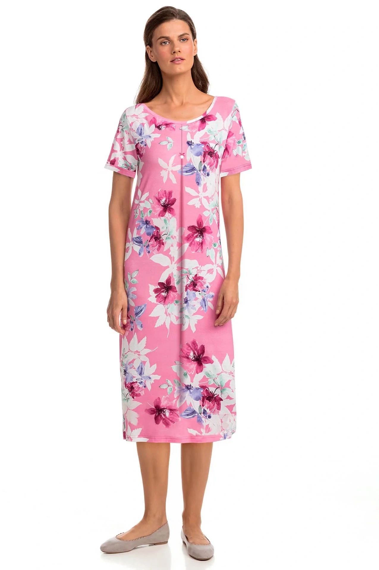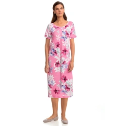 Damska koszula nocna z motywem kwiatowym zapewnia poczucie wyjątkowości i wygodę podczas snu. Koszula nocna jest ozdobiona dużymi kwiatami. Wykonana jest z wysokiej jakości mikromodalu z domieszką elastanu. Naturalny mikromodal zapewnia wyjątkową miękkość i wygodę, jest oddychający, nie kurczy się w praniu, dobrze wchłania pot i szybko schnie, a elastan nadaje odzieży niezbędną elastyczność.
