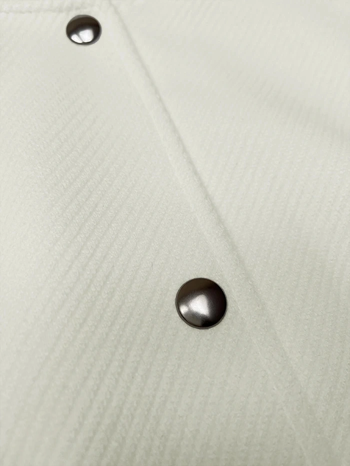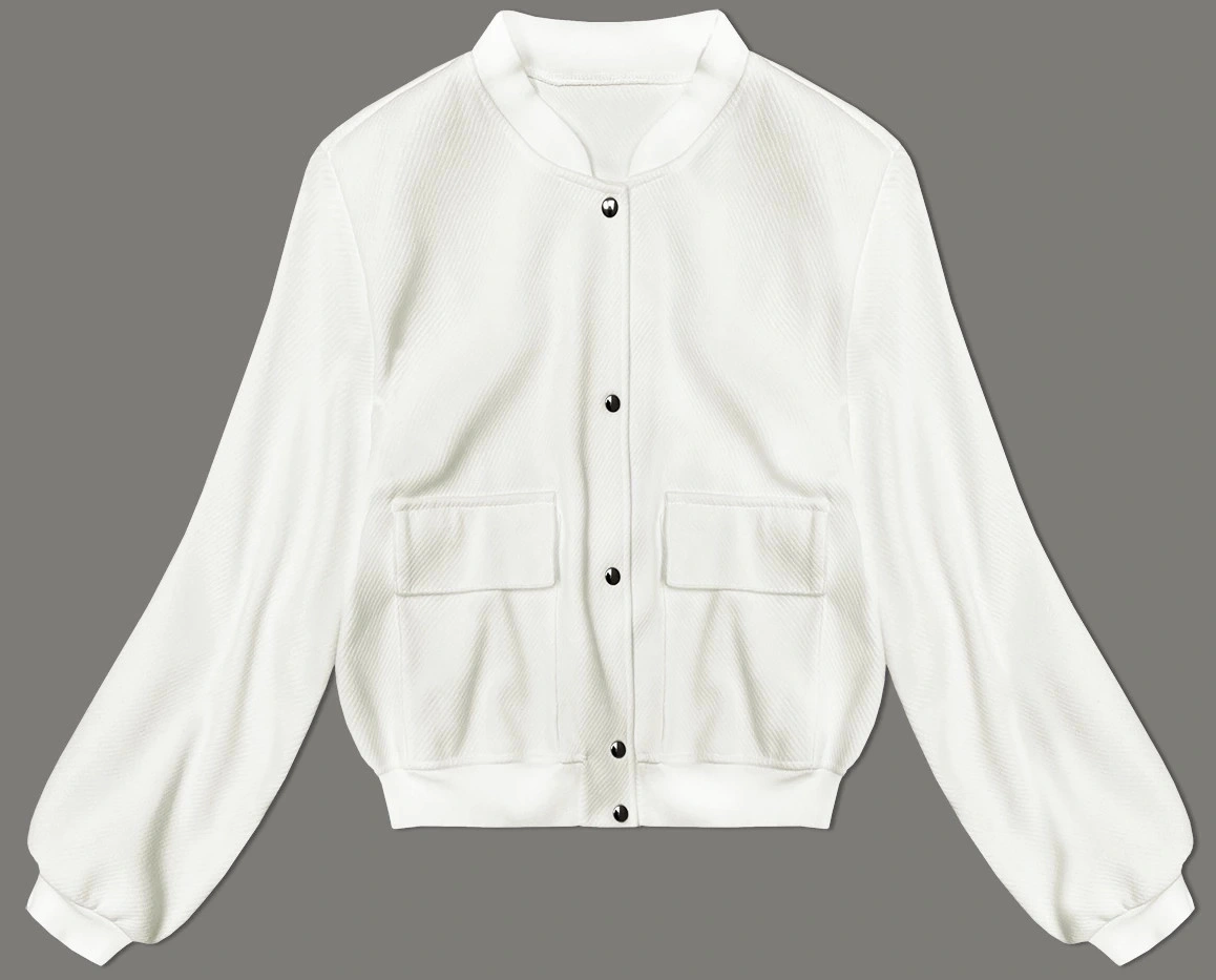 Bunda má volný střih, má stojáček, dvě kapsy bez zapínání a zapíná se patentkami. Model nemá podšívku. Délka bundy sahá k bokům.