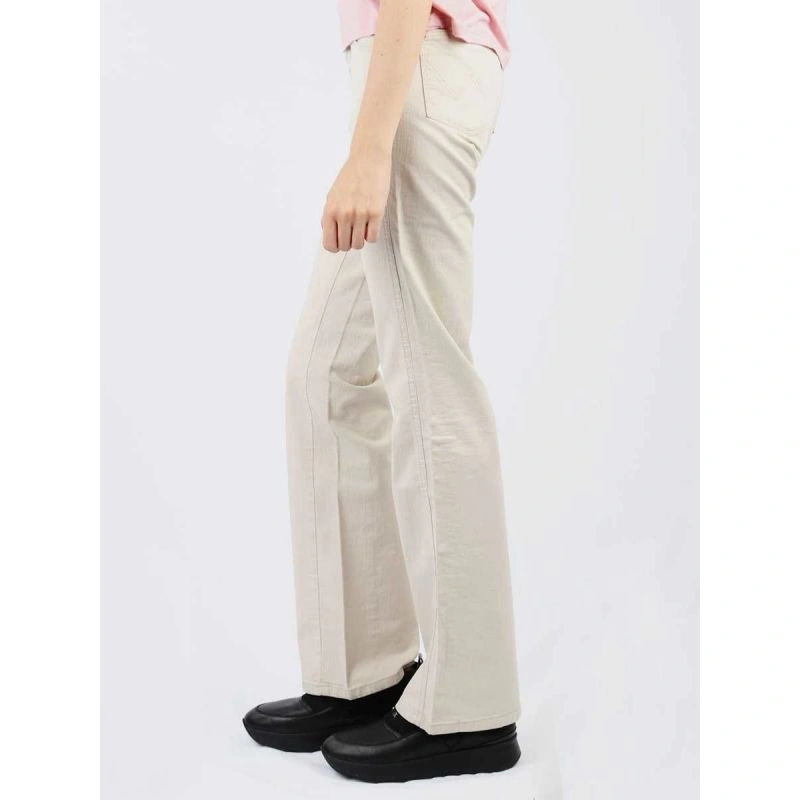 Damskie spodnie materiałowe z niskim stanem i szerokimi nogawkami. Zapinane na zamek.