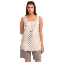 Wygodna dwuczęściowa piżama do słodkiego snu i pięknych chwil. Zestaw składa się z koszulki z wzorem w kropki, uzupełnionej monochromatycznymi szortami. Ta piżama damska jest wykonana z wysokiej jakości, niemodyfikowanej genetycznie 100% naturalnej greckiej bawełny, która zapewnia wysoki komfort, miękkość w dotyku, oddychalność i trwałość.