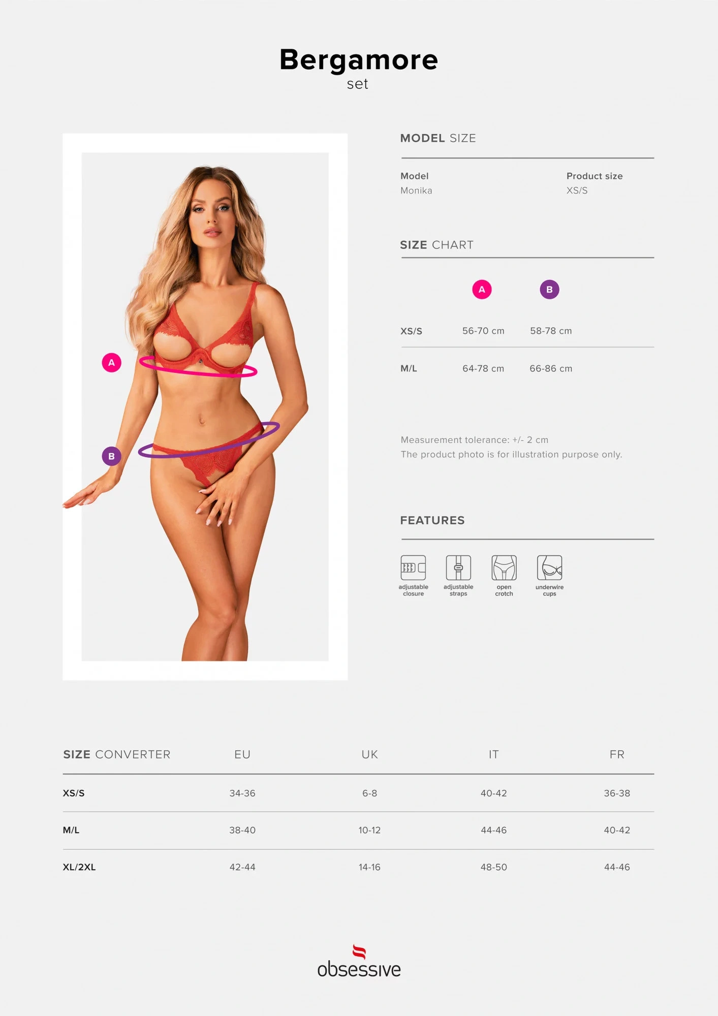 Czy jesteś zainteresowany wyjątkowo pikantnym zestawem Bergamore natychmiast? Dobra robota! To idealny wybór, jeśli marzysz o niesamowicie gorących doznaniach. Red lace zaprasza do odkrywania najbardziej zaskakujących wymiarów przyjemności...