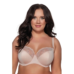 Gładki, elegancki biustonosz z półprzeźroczystymi miseczkami, których miseczki wzmocniono od spodu miękką pianką unoszącą i podtrzymującą biust oraz zgrabnie modelującą go w dekolcie. Stabilna kwiatowa koronka zdobiąca górne części miseczek kokieteryjnie zakrywa górną część piersi i pozostawia wyobraźni to, co ukryte. Dopracowana konstrukcja sprawia, że biustonosz stabilnie utrzymuje się na swoim miejscu, a szeroki obwód i ramiączka zapewniają najwyższy komfort noszenia.