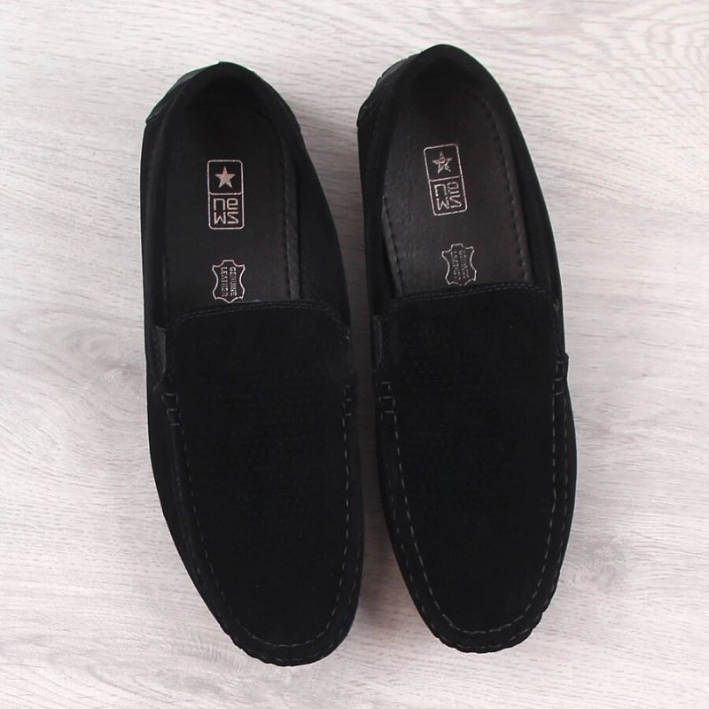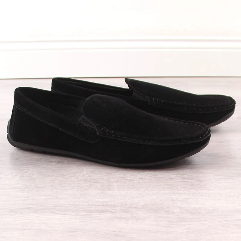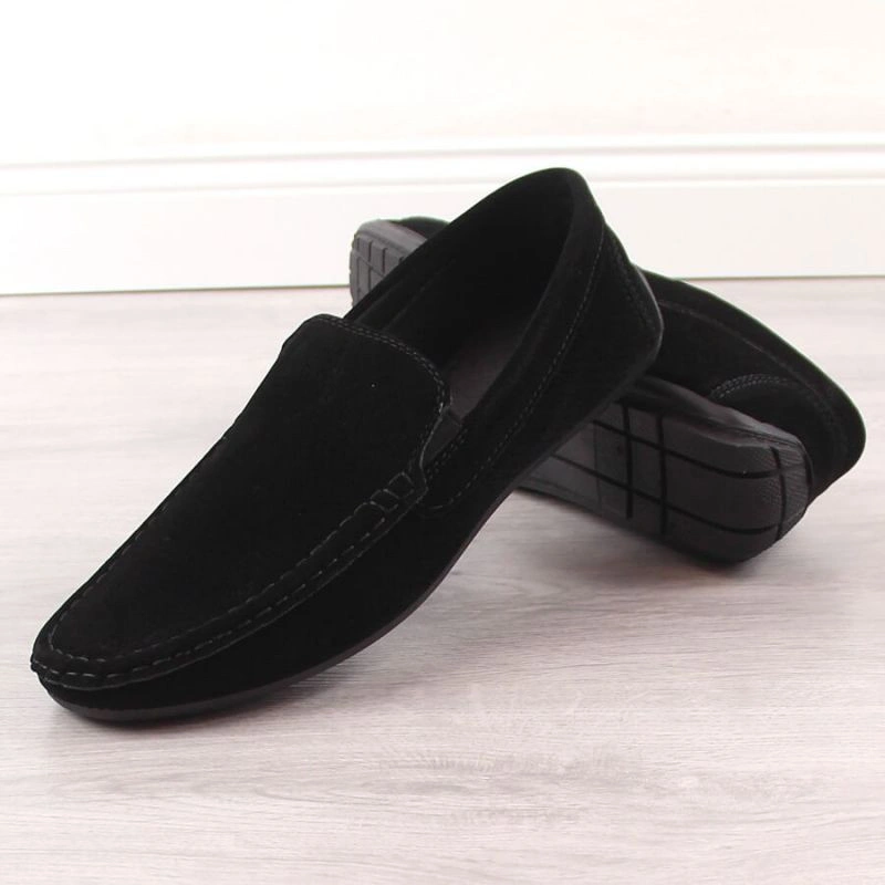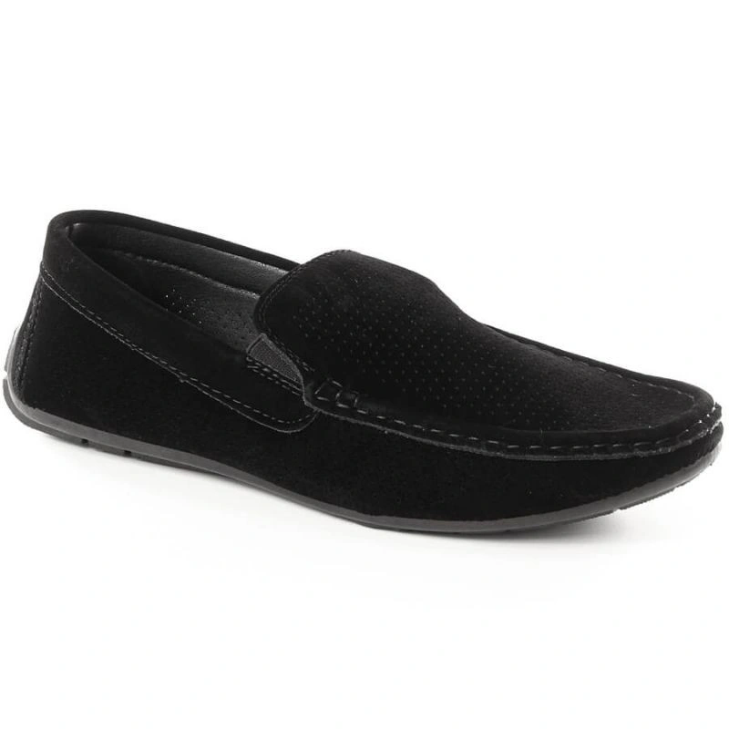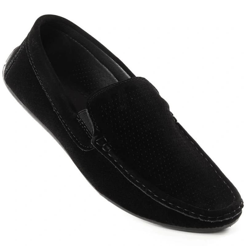 Zamszowe mokasyny męskie wsuwane ażurowe czarne News 4873