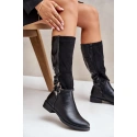 Dámské kozačky značky Jezzi. Svršek do poloviny lýtka. Uloženy na plochém podpatku, což zajišťuje pohodlí při nošení po celý den. Mají zateplený vnitřek obuvnickou vlnou, což zaručuje teplo a komfort. Špičky v mandlovém tvaru. Tento model se vyznačuje ozdobnou sponou se pásky. Klasický střih z něj činí dokonalý doplněk ke každému outfitu. Při výběru velikosti se řiďte tabulkou velikostí.