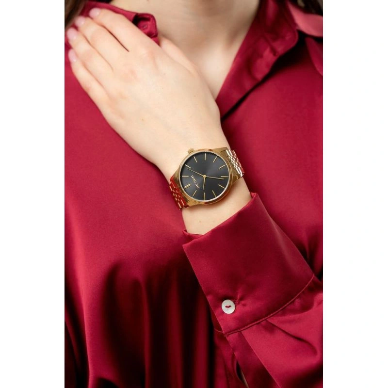 Jej gładka, delikatnie połyskująca powierzchnia harmonijnie oplata nadgarstek, zapewniając komfort noszenia przez cały dzień. Dziękiprecyzyjnemu wyprofilowaniu idealnie dopasowuje się do kobiecej dłoni, subtelnie podkreślając smukłość nadgarstka i dodając każdej stylizacji elegancji. Stal nierdzewna łączy w sobie zarówno wytrzymałość, jak i lekkość, co sprawia, że zegarek nosi się z wyjątkową wygodą. Design bransolety idealnie balansuje pomiędzy luksusem a codzienną prostotą, sprawiając, że ten model zegarka jest idealny zarówno na wieczorne wyjścia, jak i na co dzień. Całość dopełnia logo Paul Lorens na zapięciu bransolety.