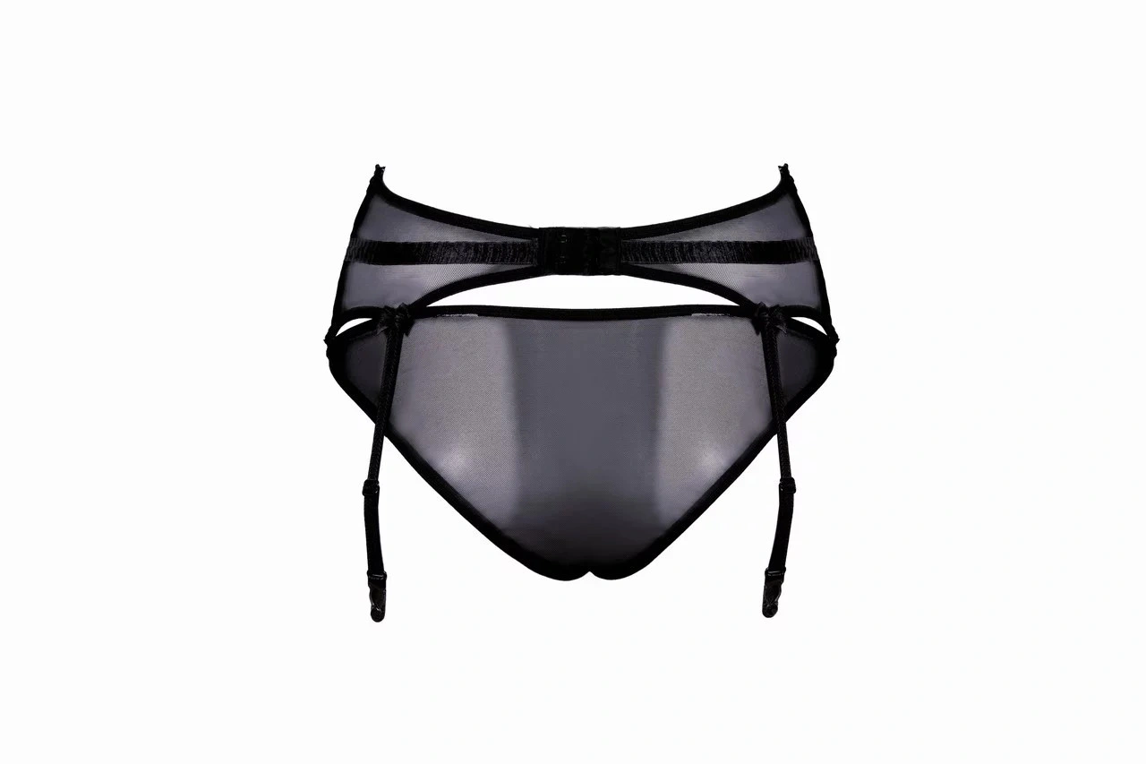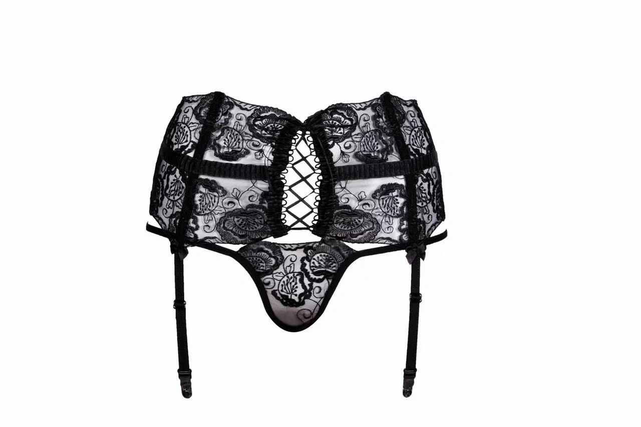 Piękny pas do pończoch z kolekcji Antinéa.Bogato formowane hafty w połączeniu z połyskiem i przezroc