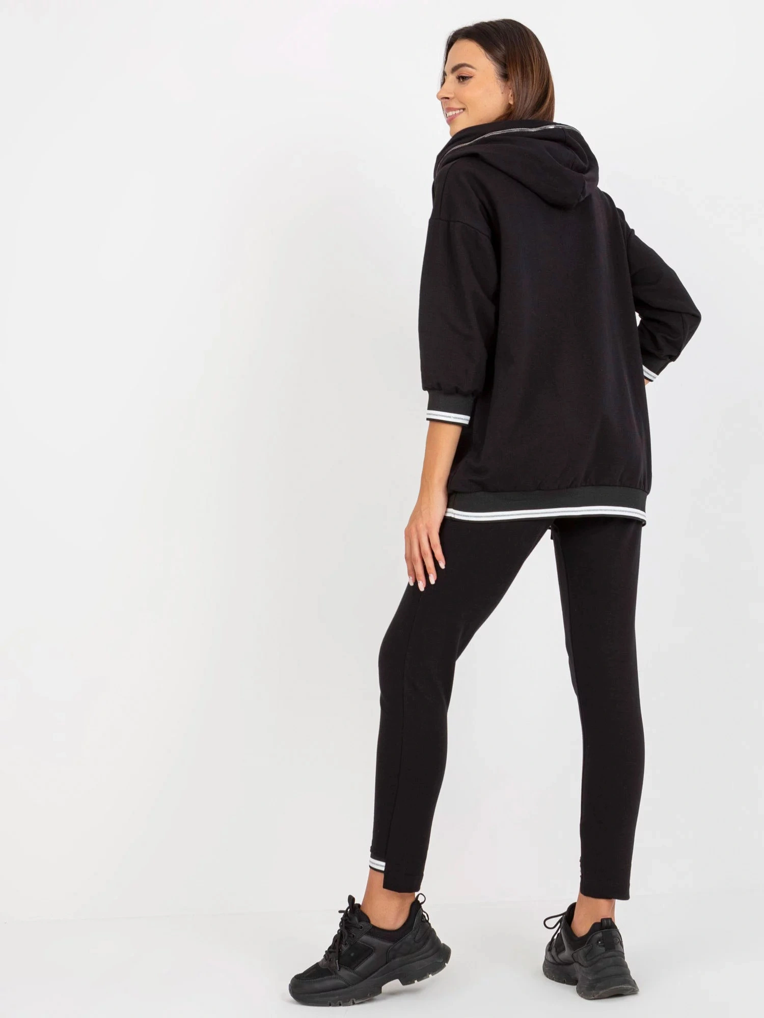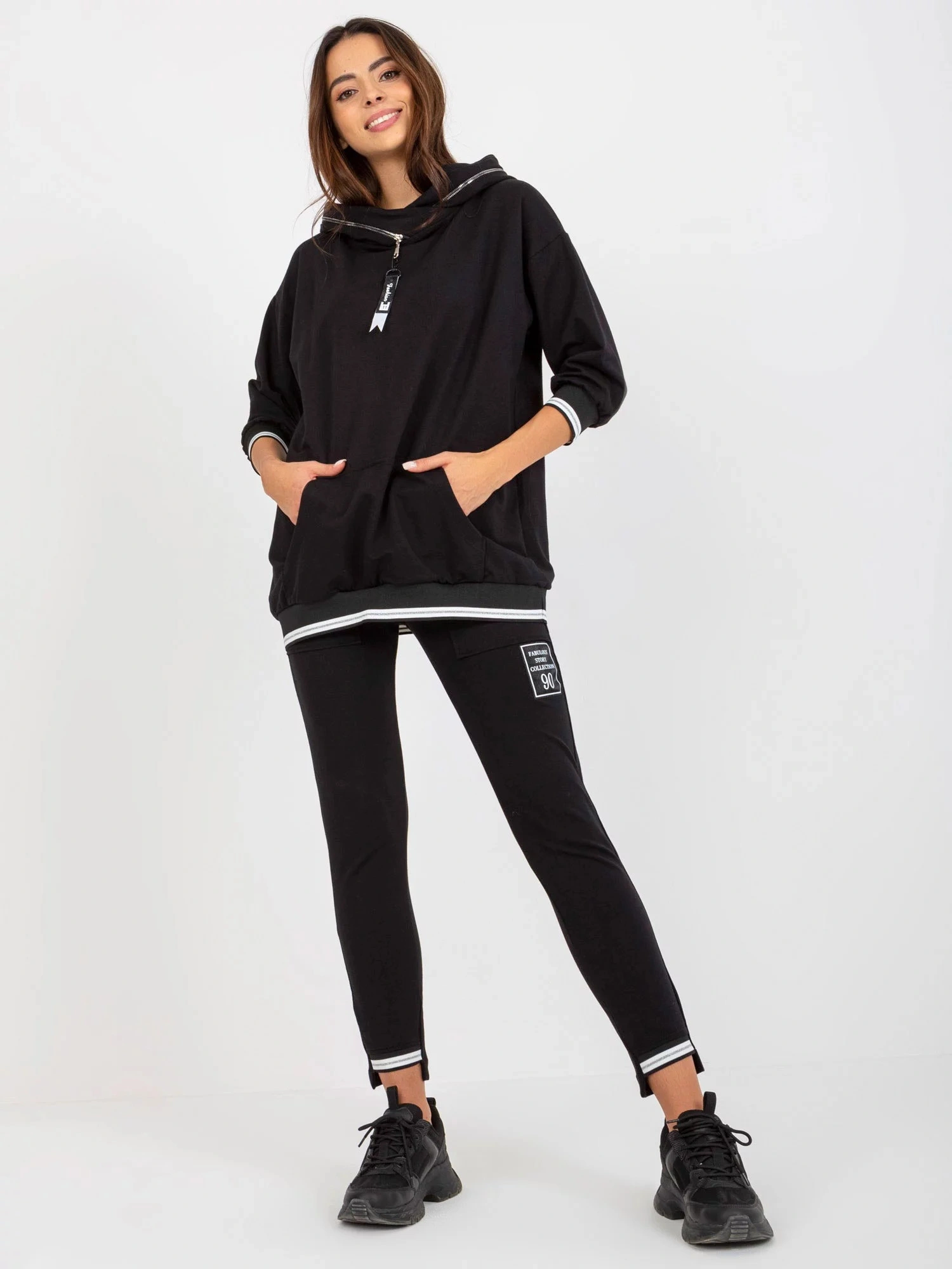 Wymiary kompletu w rozmiarze S/M mierzone na płasko: szerokość pod pachami - 60 cm, długość bluzki - 71 cm, długość rękawów - 45 cm, szerokość w pasie - 37 cm, długość spodni - 92 cm.