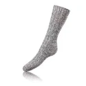Velmi teplé ponožky díky obsahu vlny (norského typu). Široké proužky. Pletený zimní vzhled v atraktivních melírovaných barvách.